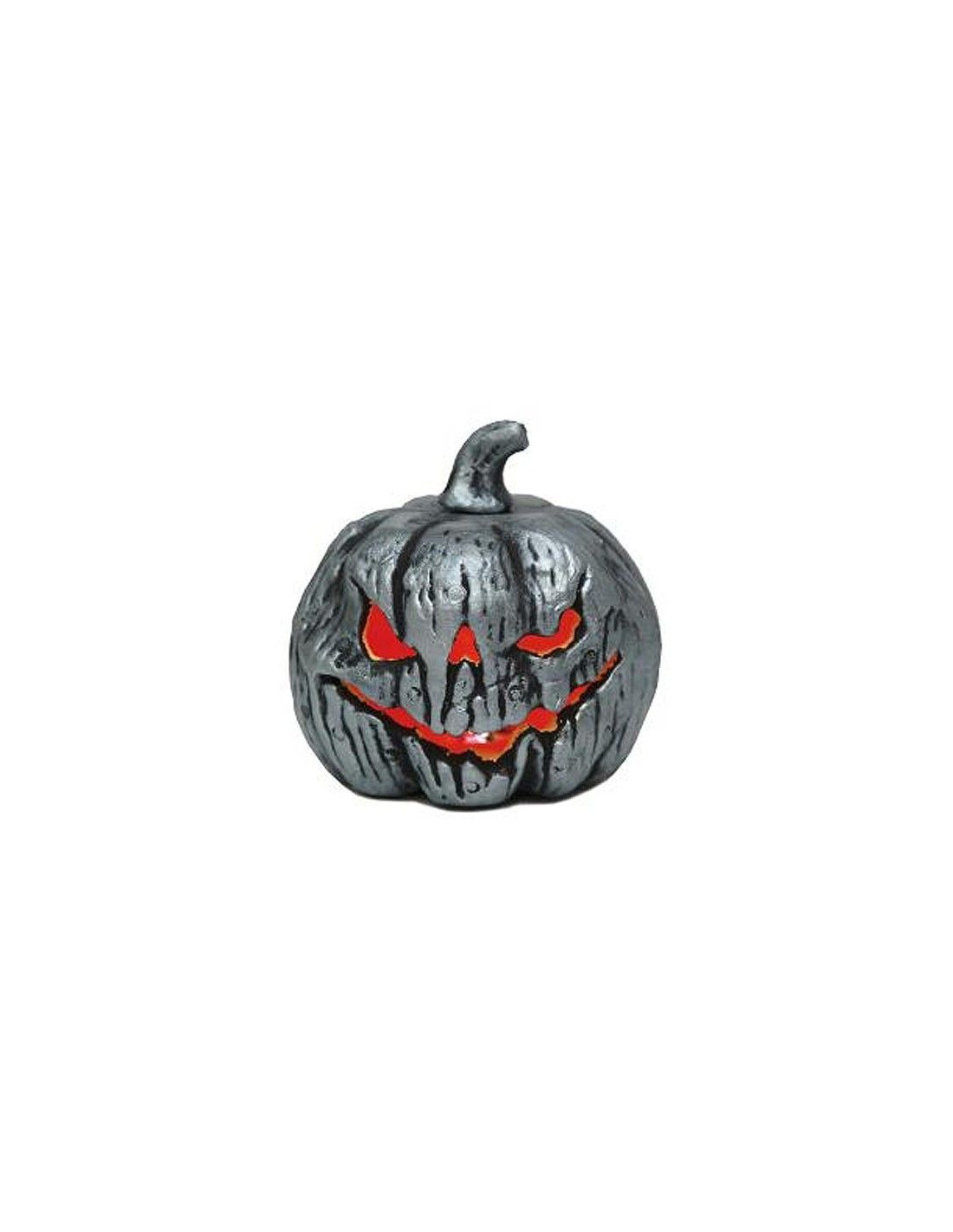 Calabaza plata con cara de terror para ambientar tu fiesta de Halloween. Medidas 20x20cm