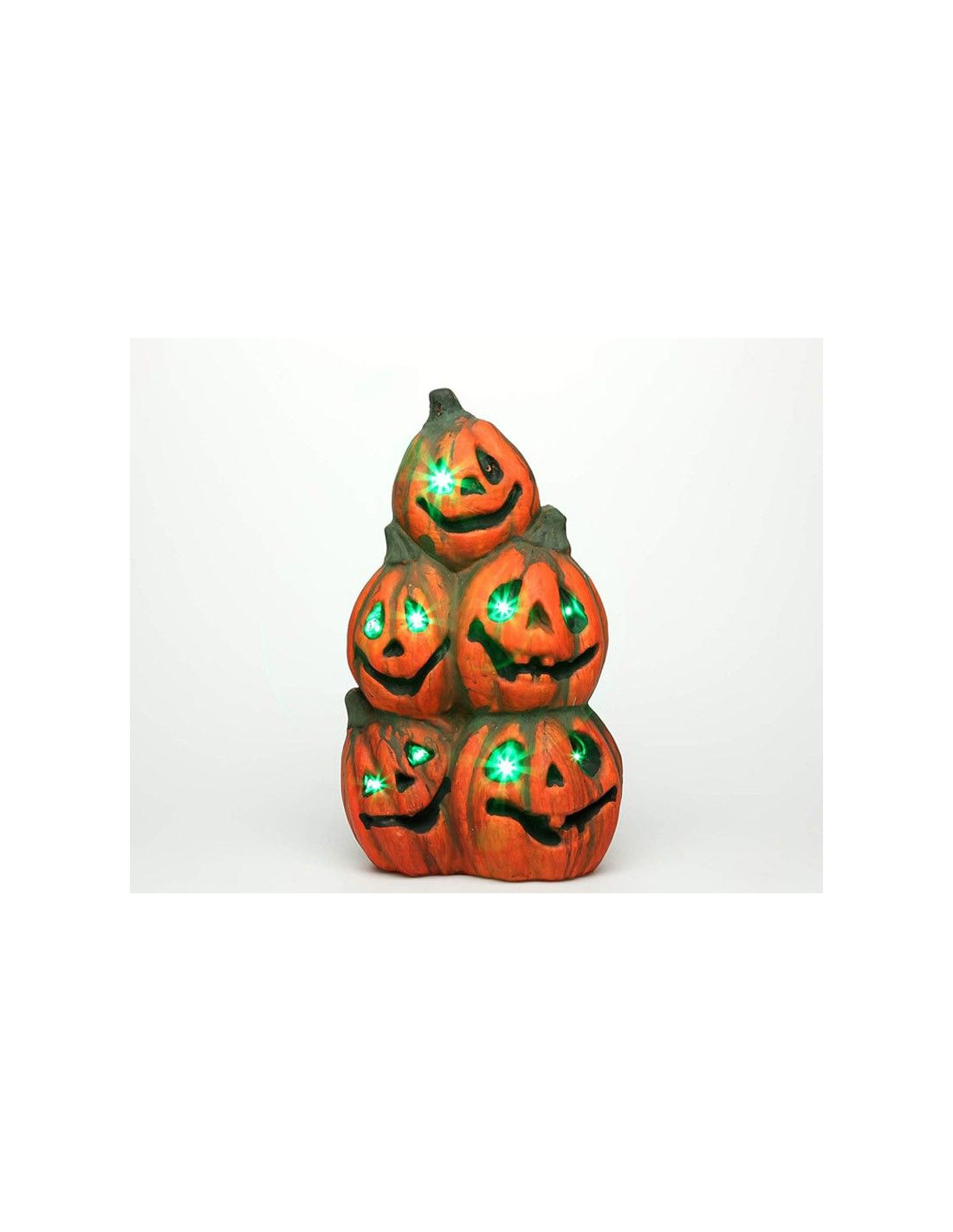 Torreta de calabazas con bombillas led en los ojos, complemento decorativo que forma un conjunto de calabazas, con lueces muy luminosas en sus ojos, muy propio para entradas de de las casas, material de polispan decorado.