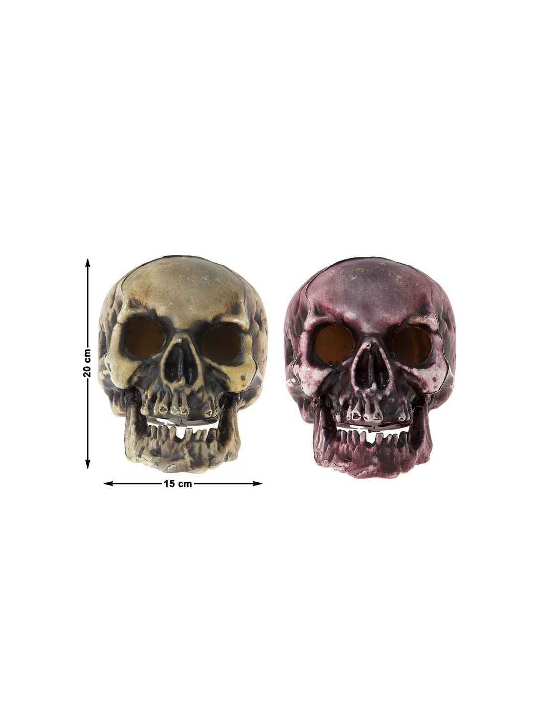 Calavera con luz de 20x15cm en dos colores surtidos. Incluye una calavera.