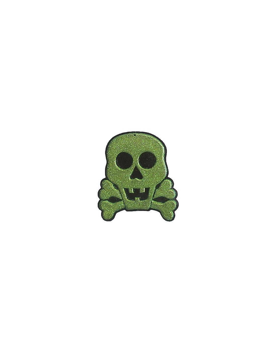 Decora tu fiesta de Halloween con esta calavera fluorescente de plastico para colgar en la pared de tu casa, decorar escaparates o locales, es muy vistosa porque esta pintada con escarcha iriscente la cual aporta mucha vistosidad a la calavera en relieve.