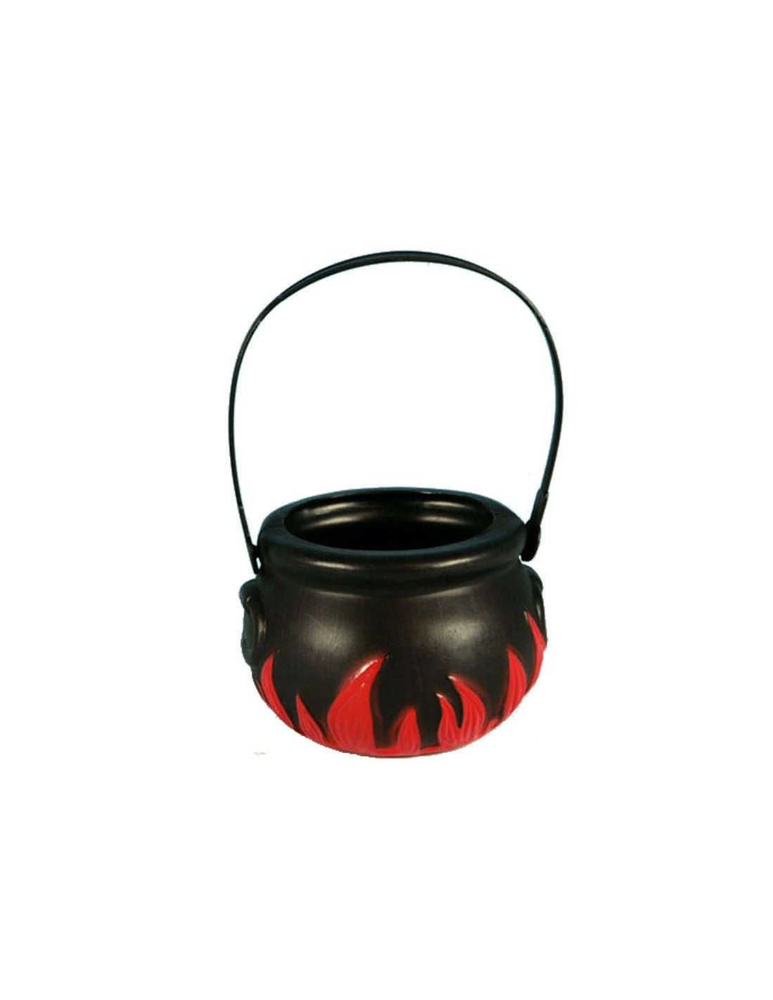Olla de plástico duro de 12cm de diámetro y 8,60cm de altura, con asa y fuego dibujado. Perfecta para complementar tu disfraz de Halloween.