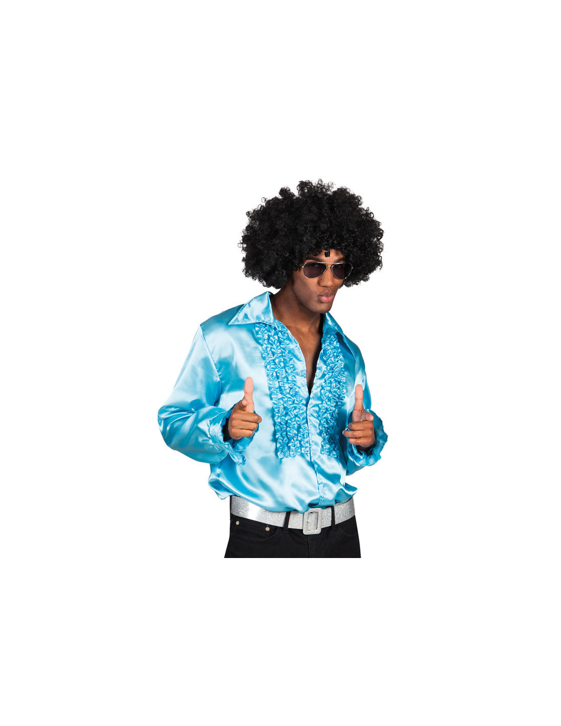 Camisa Disco Party turquesa que incluye una elegante camisa brillante.