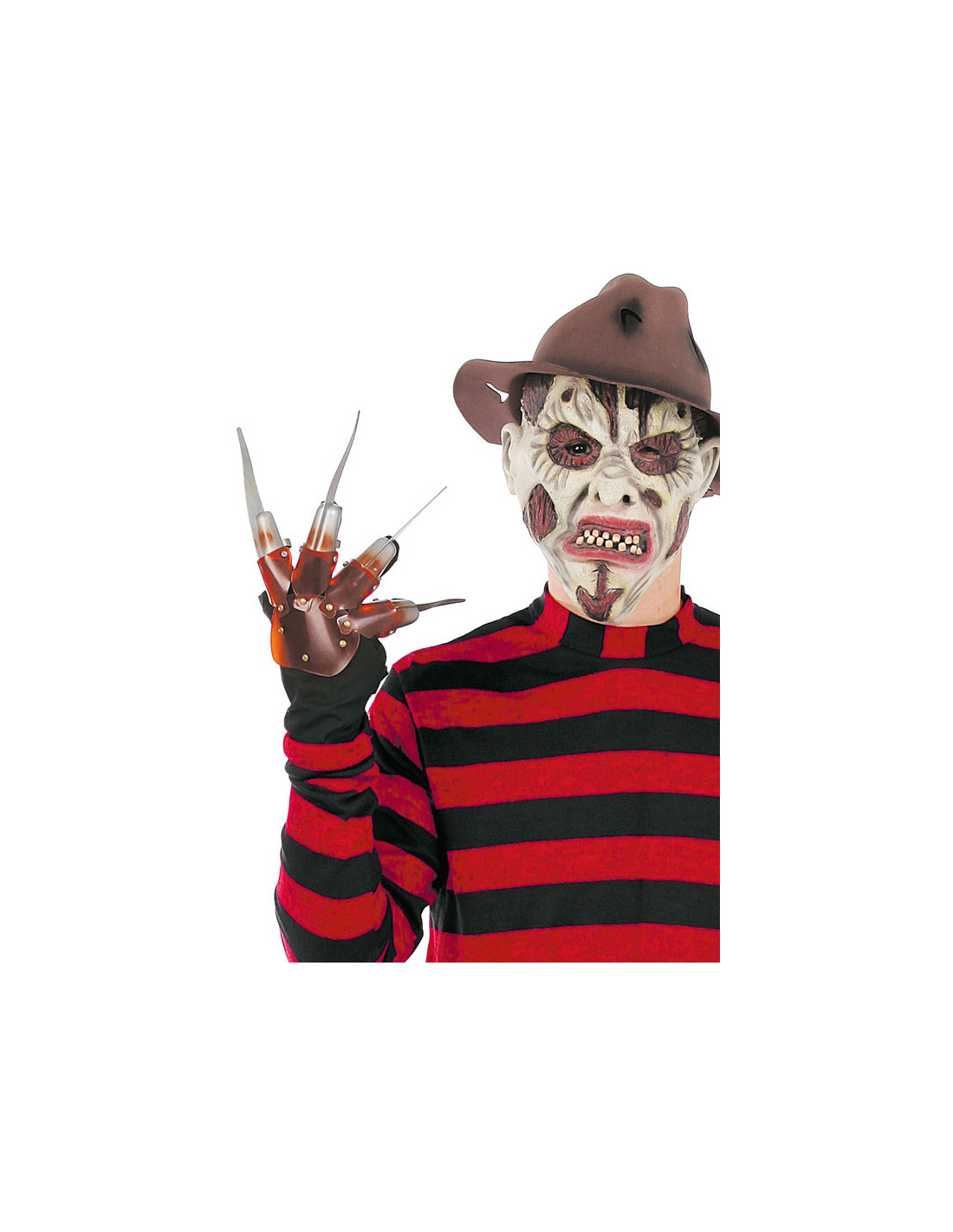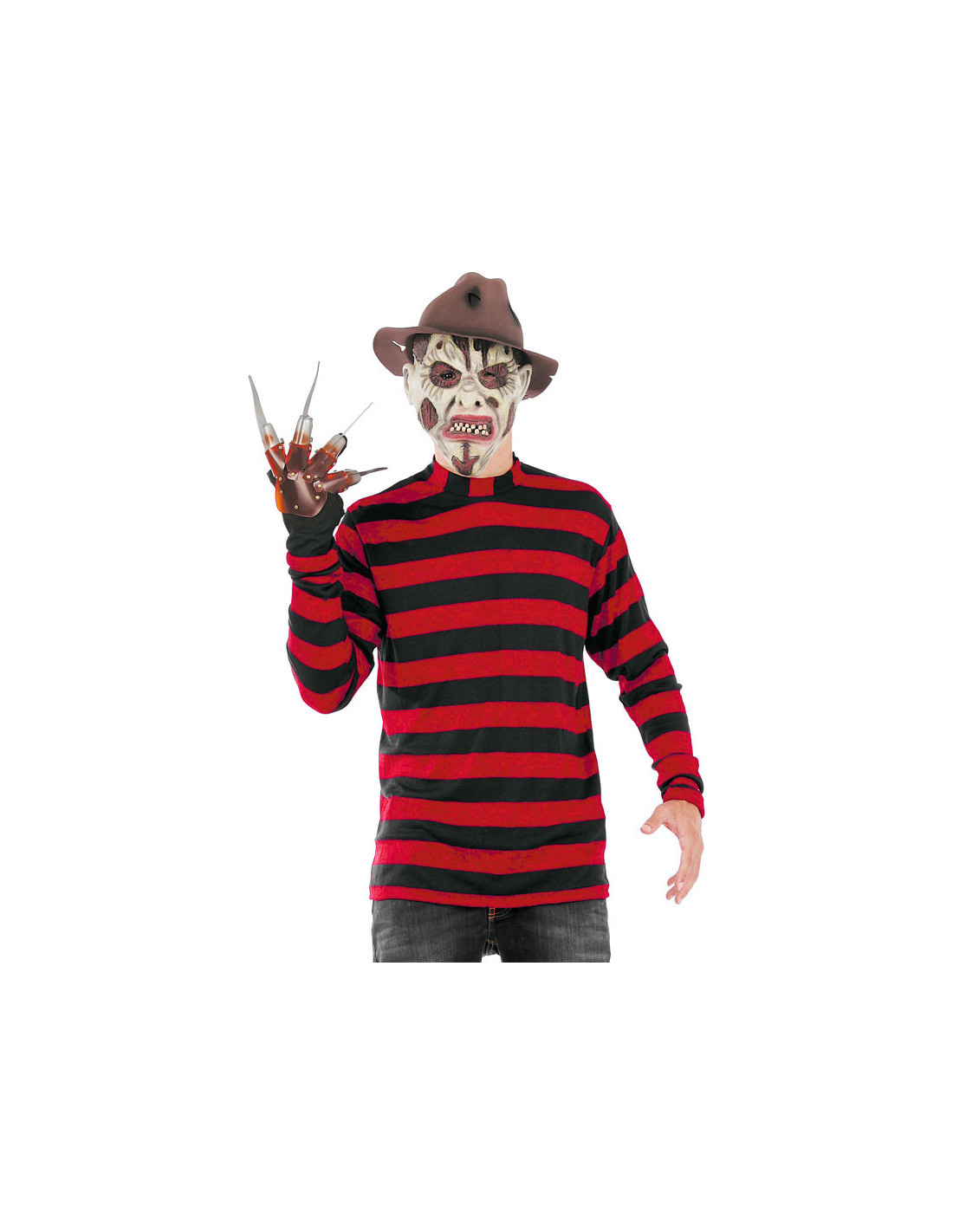Transfórmate en un temible asesino con esta camiseta de Freddy Krueger. No te olvides de las manos y el sombrero para llevar el set completo.