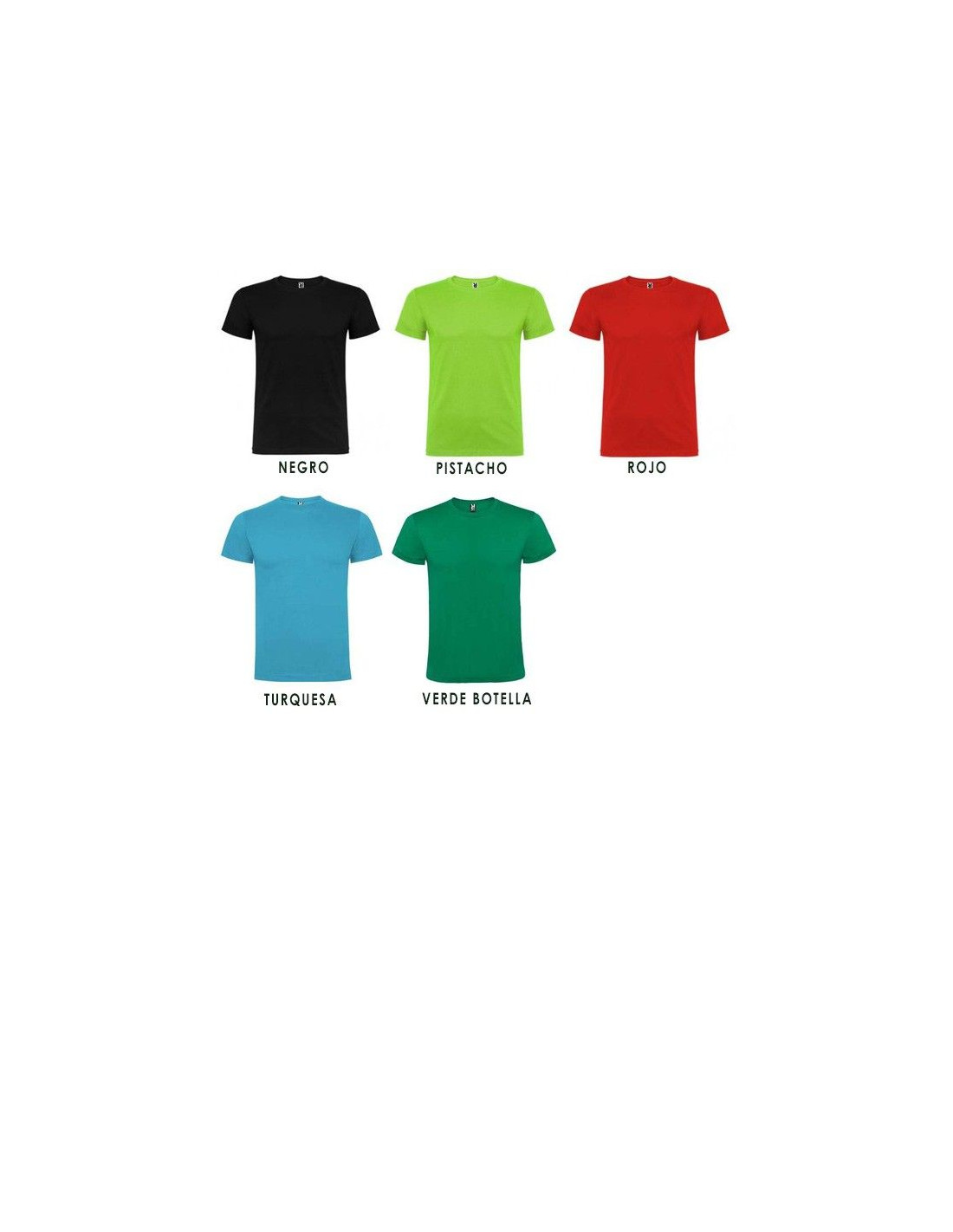 Camiseta de manga corta, 100% algodón, punto liso, 165 g., con cuello redondo de 4 capas y cubrecosturas reforzado en cuello y hombros. Costuras laterales. Los tonos entre tallas pueden variar.
