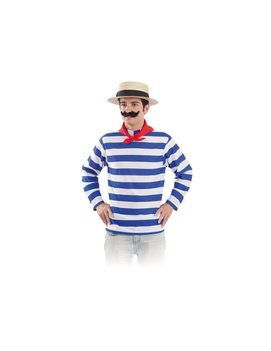 Camiseta gondolero adulto que consta de una camisa a rayas de manga larga y un pañuelo rojo.