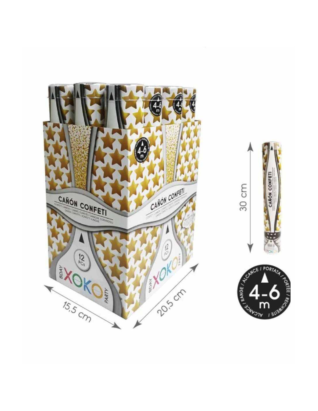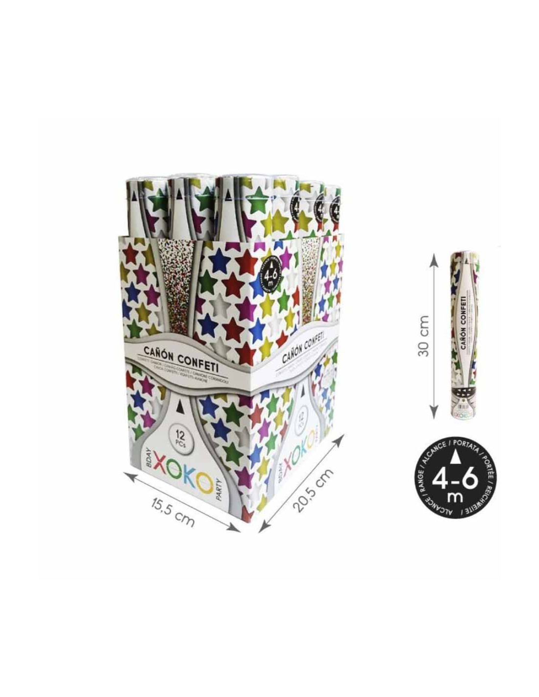 Cañón confetti estrellas que incluye un cañón de 30 cm.
