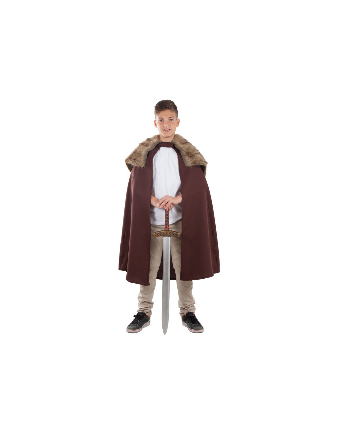 Capa de guerrero medieval infantil con pelo sintético a modo de capelina. En color marrón/rojizo, está disponible en varias tallas.