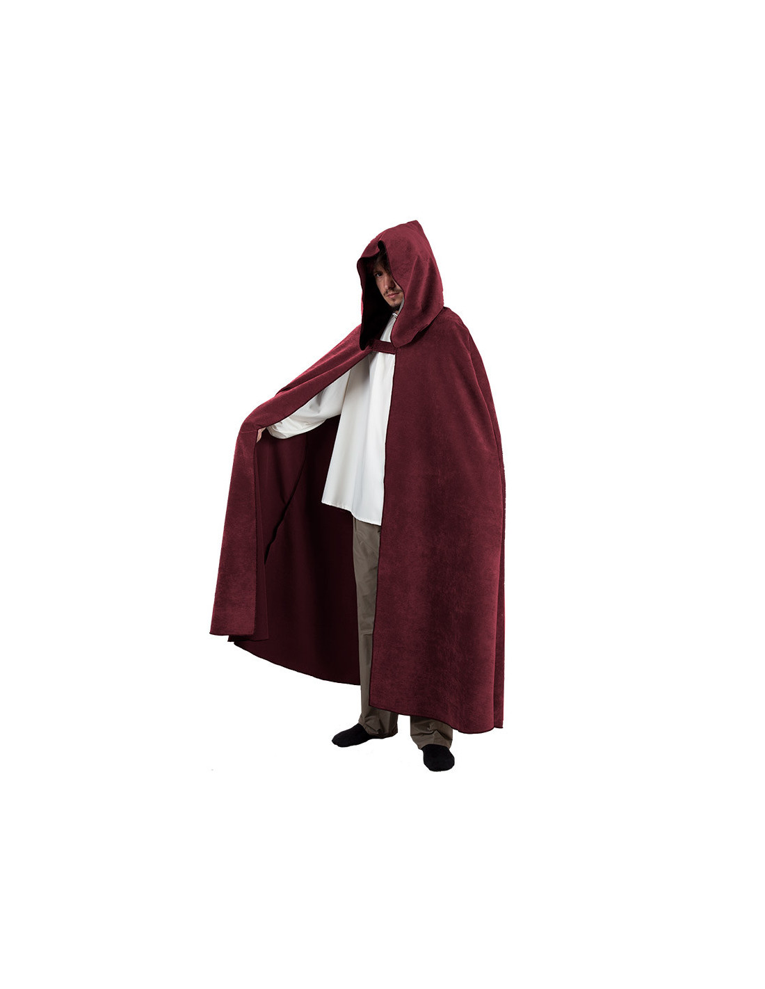 Capa medieval con capucha que mide 137cm de largo aproximadamente. Disponible en varios colores.