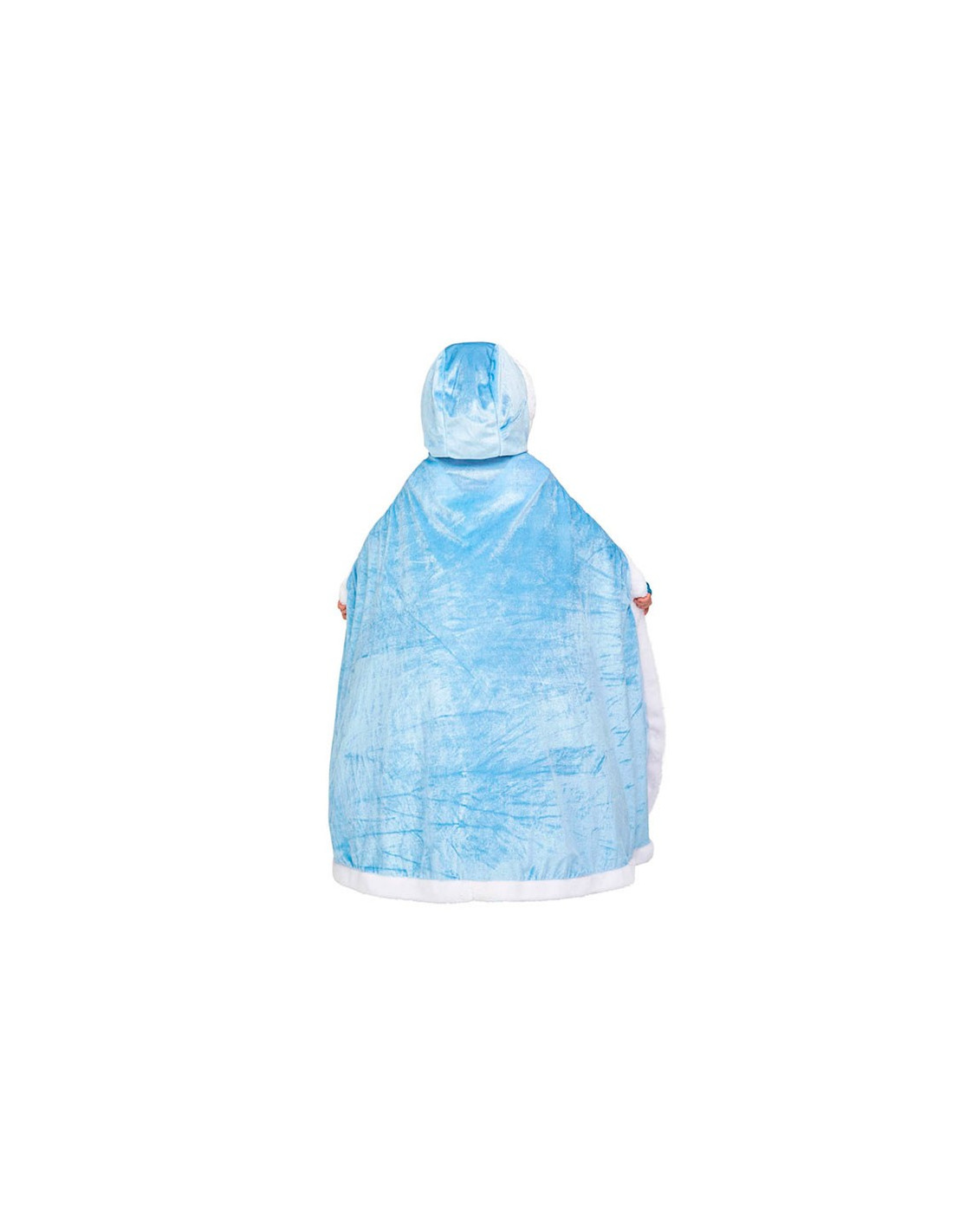 La capa princesa azul infantil tiene capucha y es aterciopelada con ribete blanco.