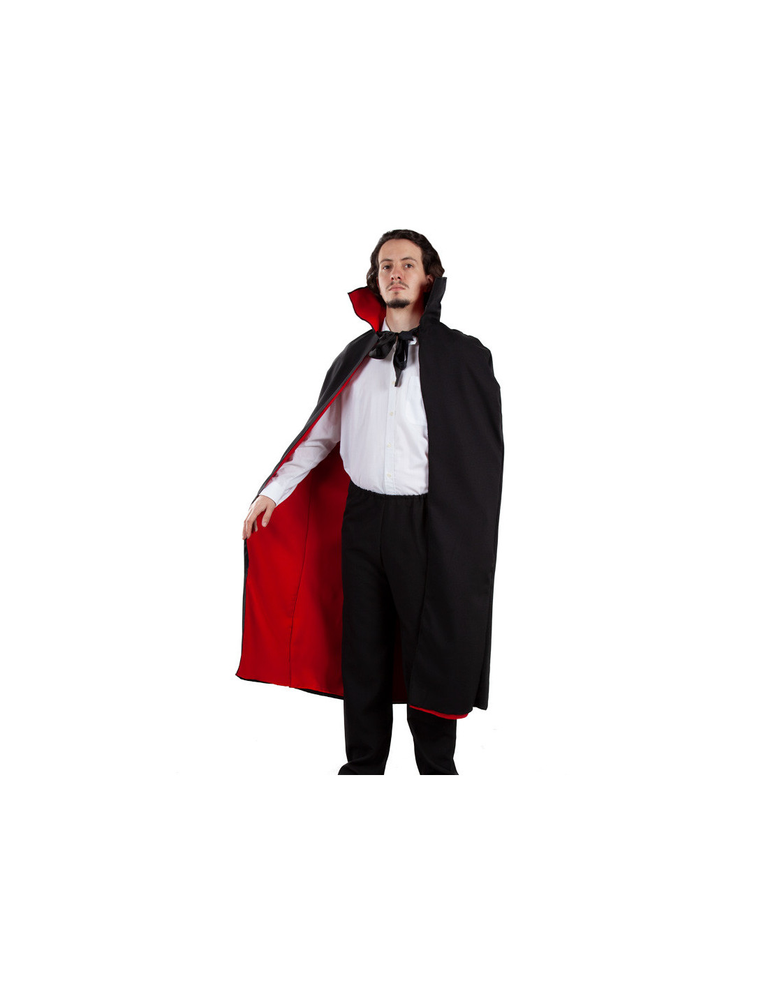 Capa vampiro reversible adulto que incluye una capa con cuello alto de color negro y rojo.