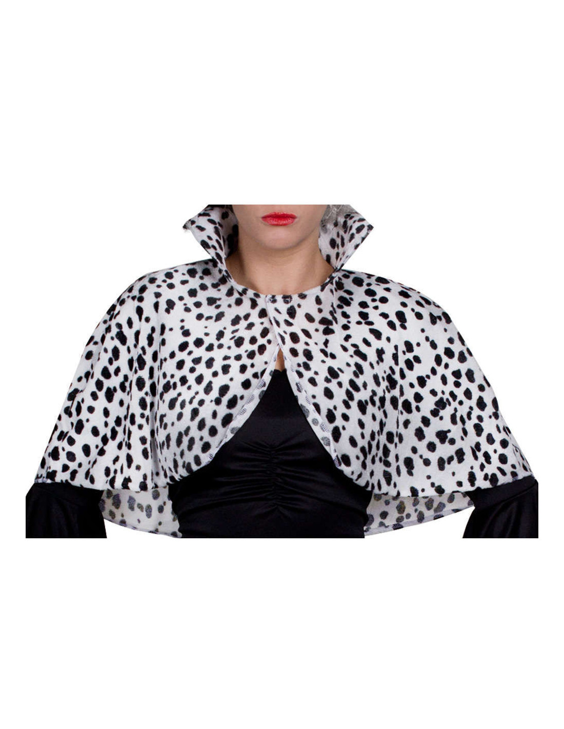 Capelina Cruela de Vil mujer que incluye un cubrehombros con estampado dálmata, cuello y velcro.