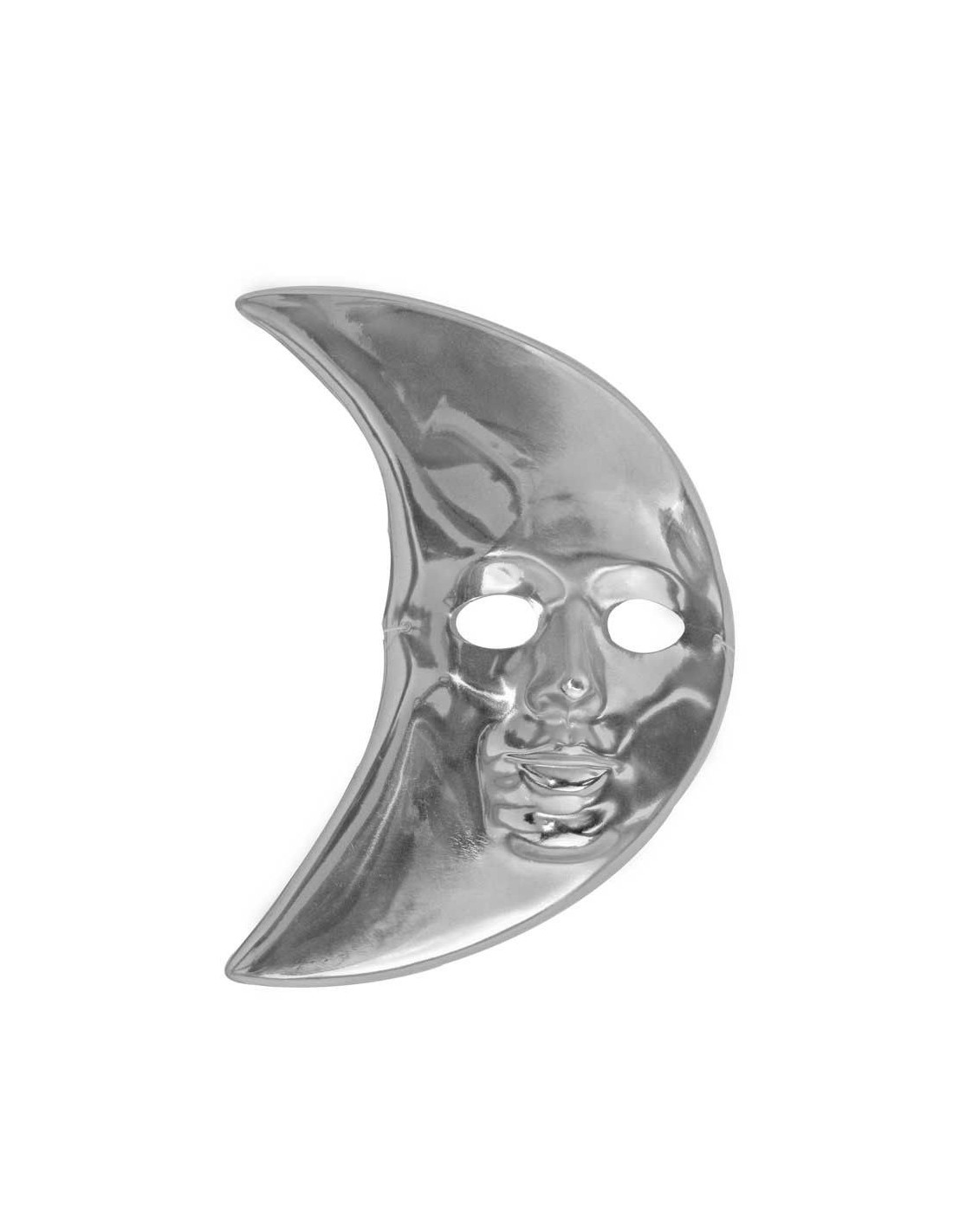 ¡Brilla como la luna en tu fiesta más especial!Con esta máscara con forma de media luna podrás ocultarte como lo hace el satélite más famoso de la Historia. Fabricada en plástico pvc. Disponible en color plata. Incluye elástico para sujetar a la cabeza.