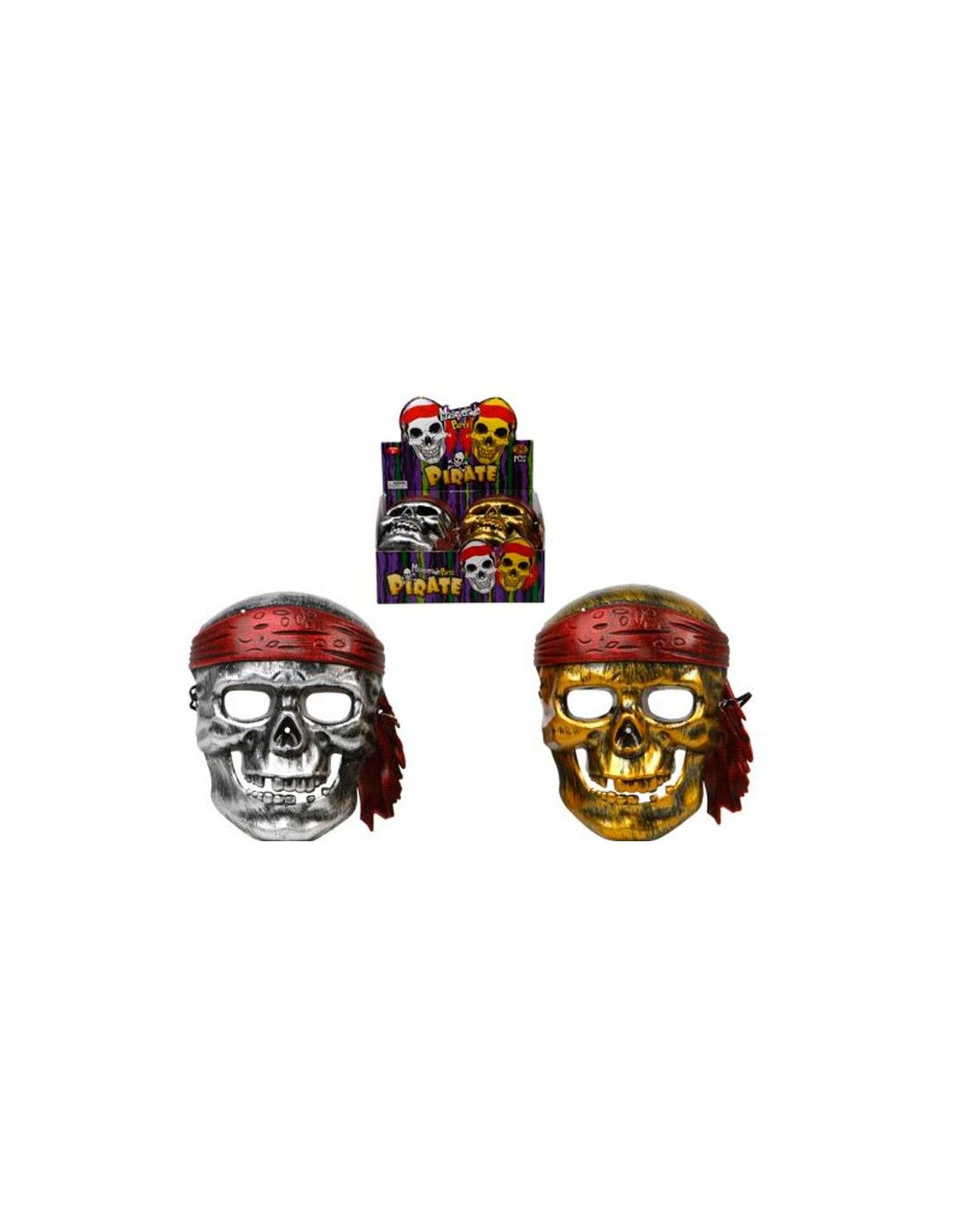 Navega en busca del tesoro perdido con esta careta de pirata barata. Fabricada de plástico y disponible dos modelos diferentes, en color dorado y plata, esta careta de pirata barata es ideal para convertirse en todo un corsario de alta mar. No se puede elegir modelo, disponible en modelos surtidos.