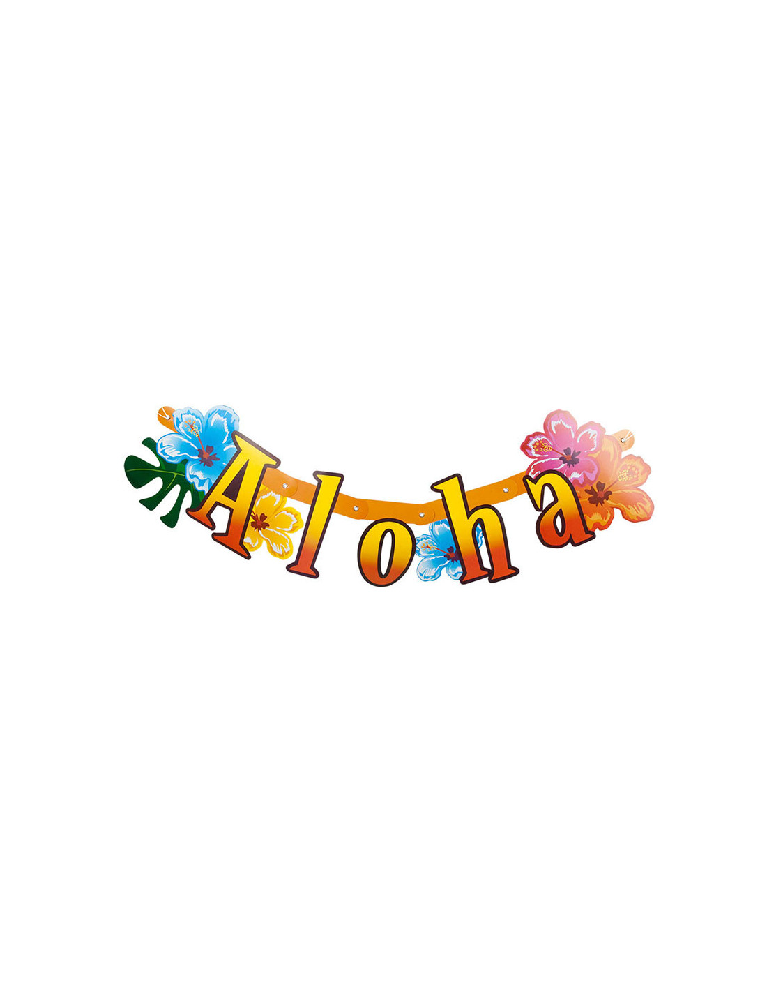 Cartel hawaiano Aloha para dar la bienvenida a tus invitados en tu fiesta tropical. Las fiestas temáticas hawaianas son un acierto seguro en cualquier ocasión. No olvidéis vuestras flores en el pelo, las coloridas camisas y las faldas hawaianas para disfrutar de una fiesta increíble.