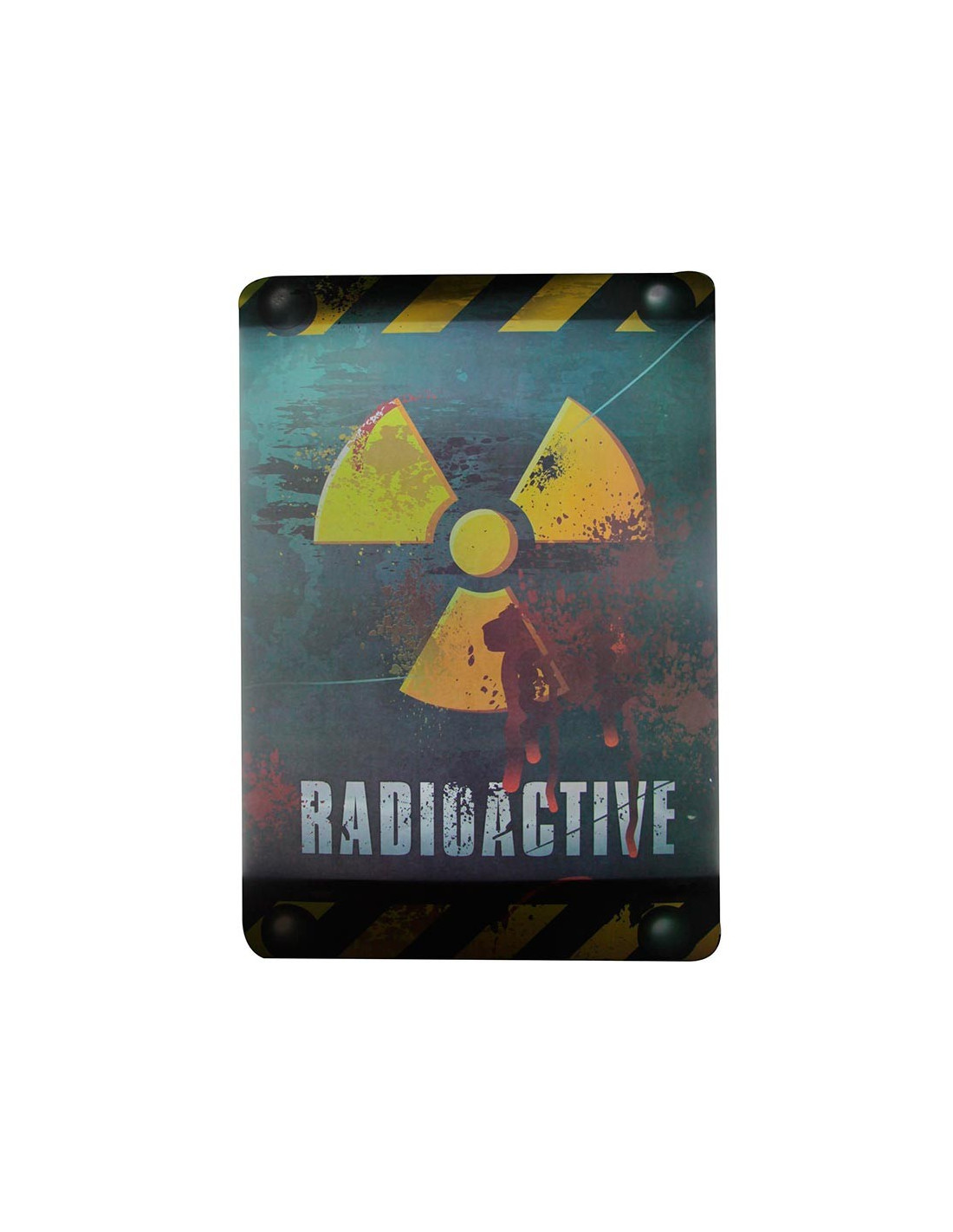 Cartel Zona Radiactiva para colocar en la entrada de tu laboratorio zombie. Advierte a los visitantes de que no se van a encontrar nada bueno en tu fiesta de Halloween.