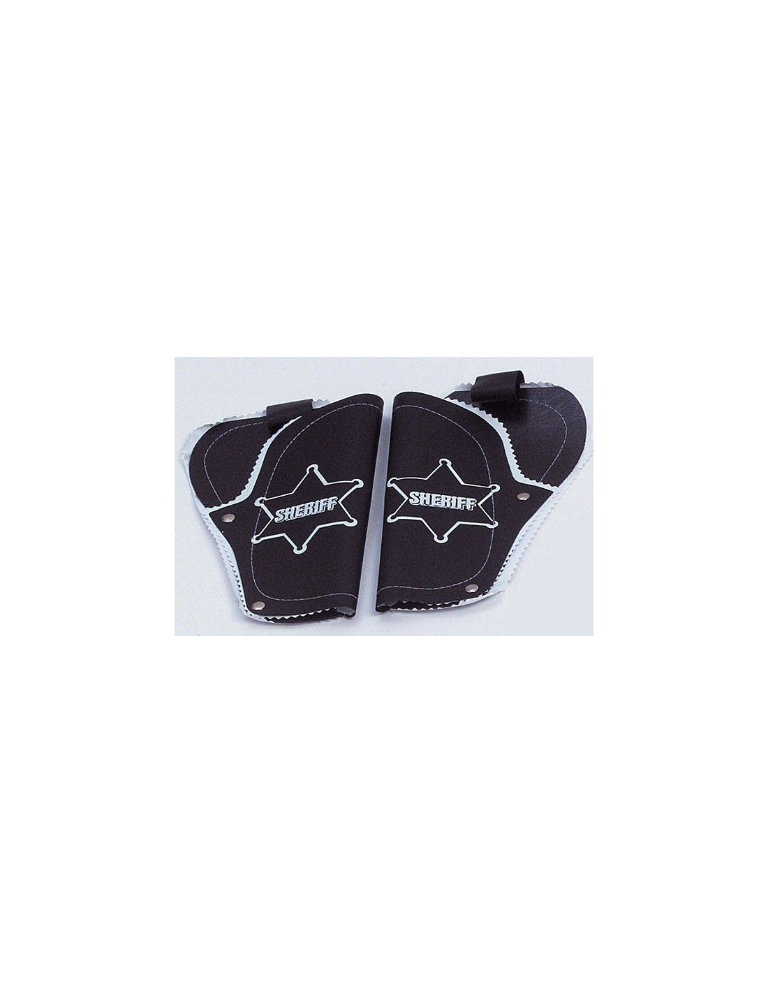 Conviértete en el jefe del Oeste con esta cartuchera doble sheriff. Fabricadas en tela. Disponible en color negro con motivos decorativos del oeste en color blanco. Incluye dos cartucheras de sheriff.