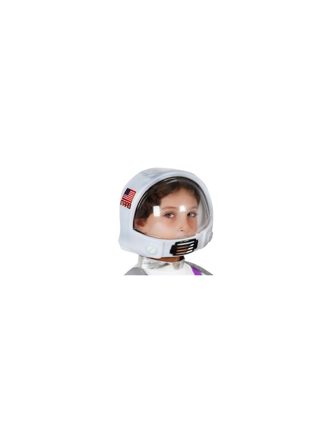 Casco de astronauta infantil para Carnaval, Halloween o cualquier fiesta que se le ponga por delante al peuqe de la fmailia, Incluye un completo casco de astronauta infantil, en color blanco y con la banderas de Estados Unidos a nivel decorativo, y con unas dimensiones de 20x16cm.