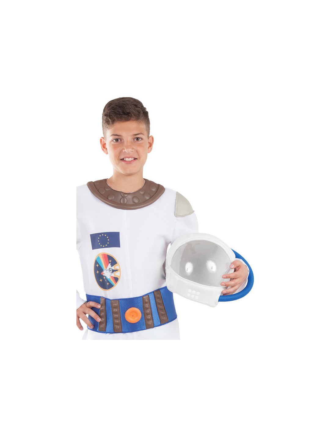 Incluye un casco de astronauta infantil de goma eva blanco y plástico.