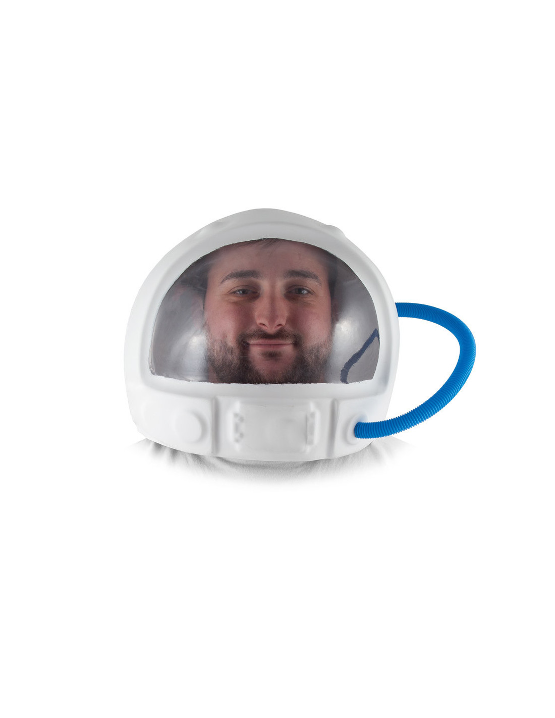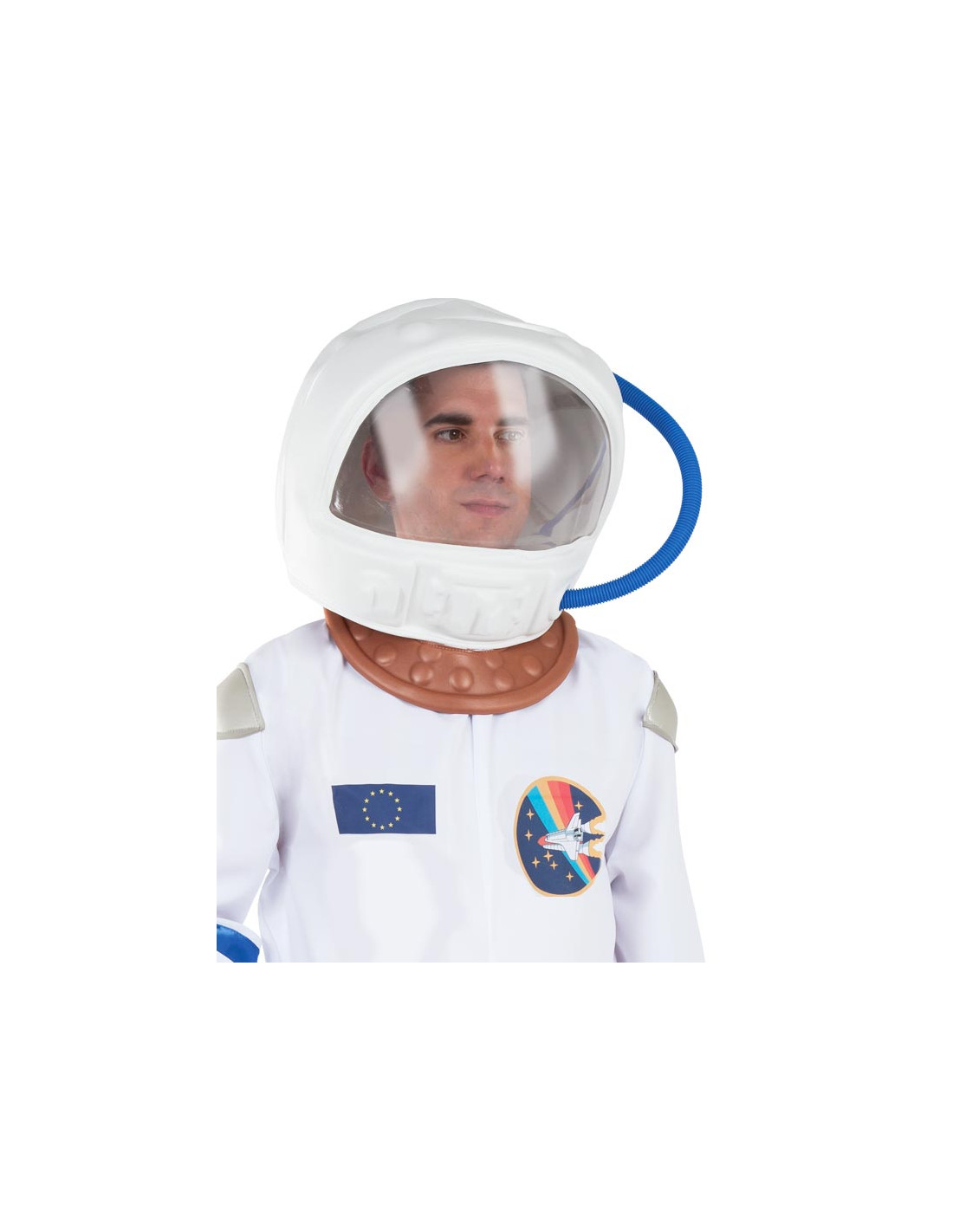 Casco de astronauta para adulto fabricado de goma eva, con un tubo simulando la vía para respirar.