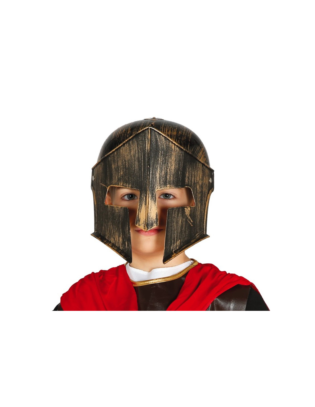 Casco espartano infantil para que tu pequeño se convierta en un valiente guerrero. Ideal para fiestas temáticas romanas en Carnaval. No olvides completarlo con tu escudo y espada.