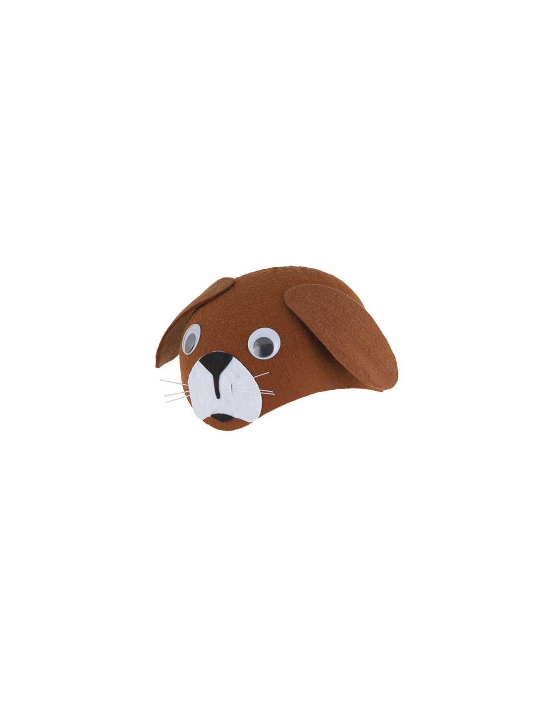 Casquete de fieltro caracterizando un perrito y con goma para sujetar por debajo de la barbilla