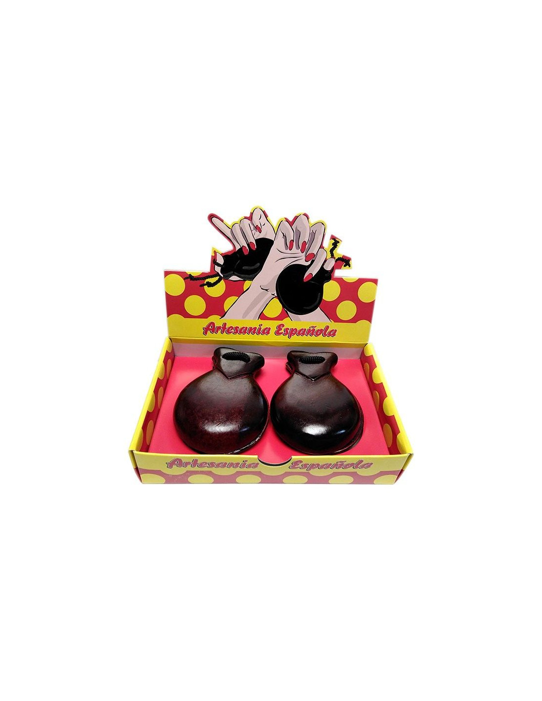 Castañuelas pulidas de madera con unas medidas 85x65mm. Disponibles en color caoba. Artesanía Española. Se vende el par.
