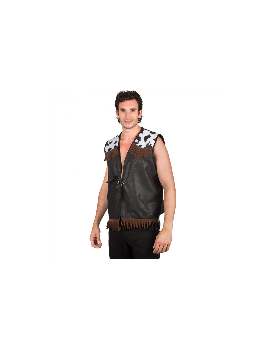 Te convertirás en un auténtico vaquero del Oeste los próximos carnavales con este bonito chaleco. Contiene flecos y piel sintética imitando piel de vaca como detalle en los hombros. Completa tu disfraz con unas cartucheras, revólveres y sombrero vaquero.