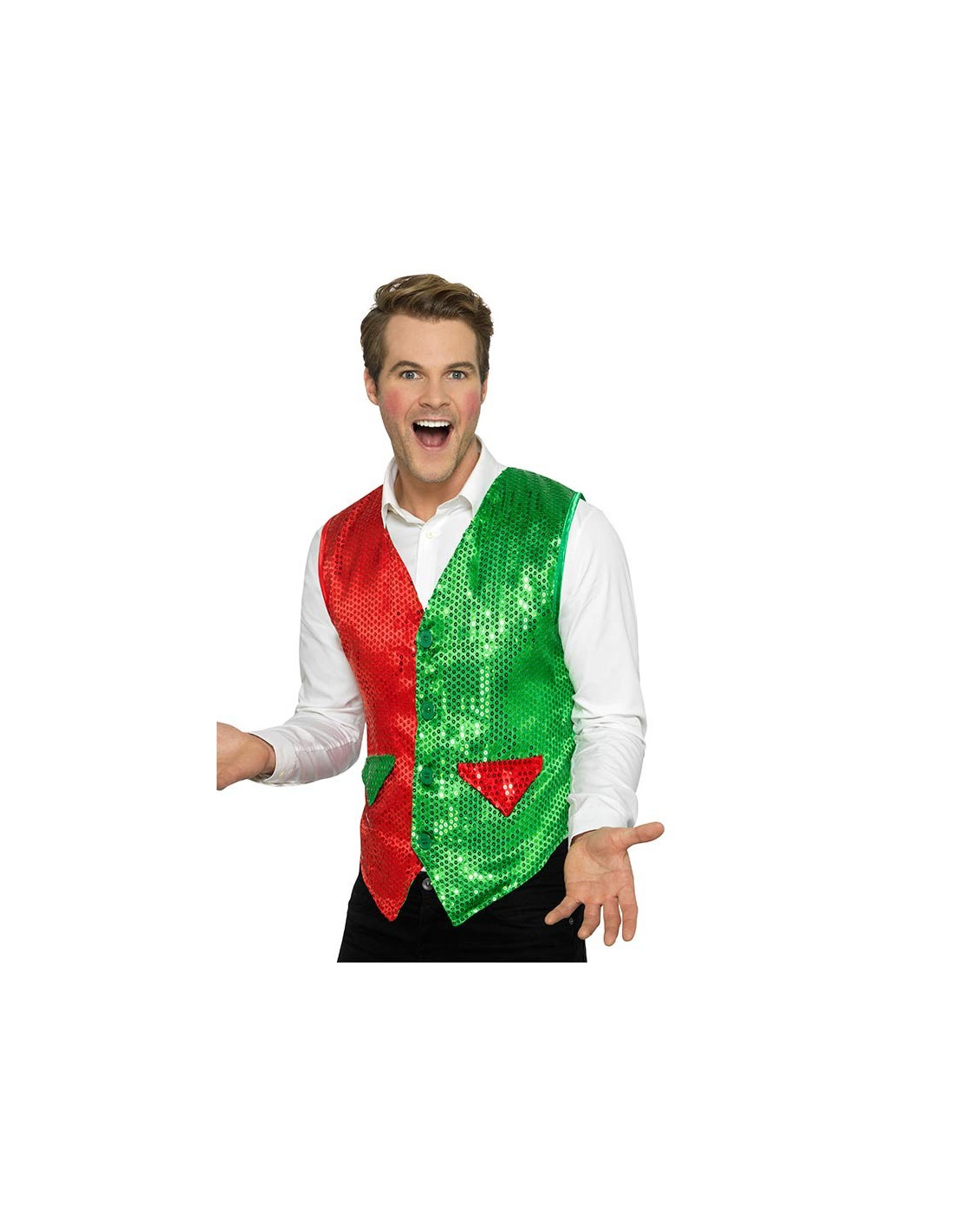 Chaleco elfo de lentejuelas adulto bicolor en rojo y verde.