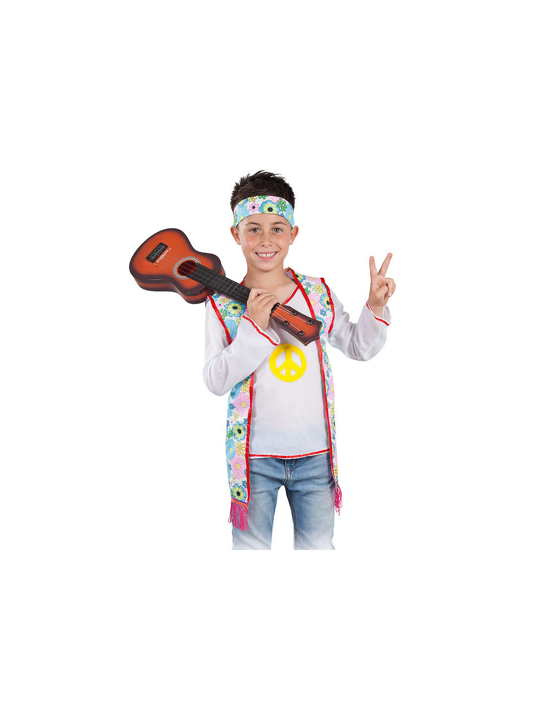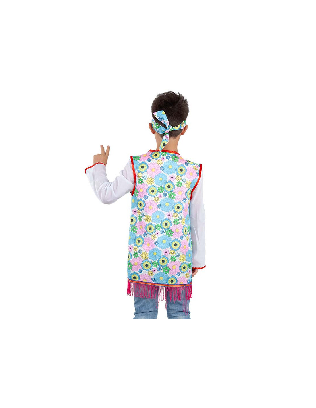 Tu peque viajará hasta los años 60 con este chaleco hippie con cinta infantil. Ideal para que los pequeños se disfracen en Carnaval o festivales Fin de curso de forma barata y sencilla.