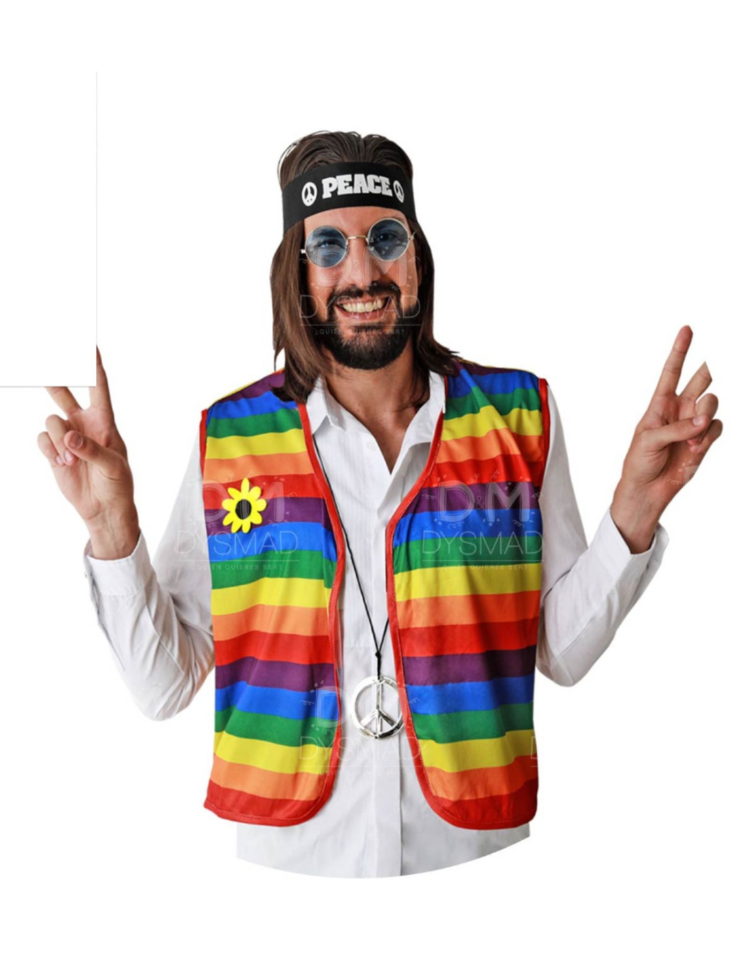 Conviértete en el hippie más buenrollero de la fiesta con este colorido chaleco. Con estampado de arcoíris para combinarlo con todos los colores que quieras. También puede resultar el complemento perfecto para la fiesta del Orgullo.