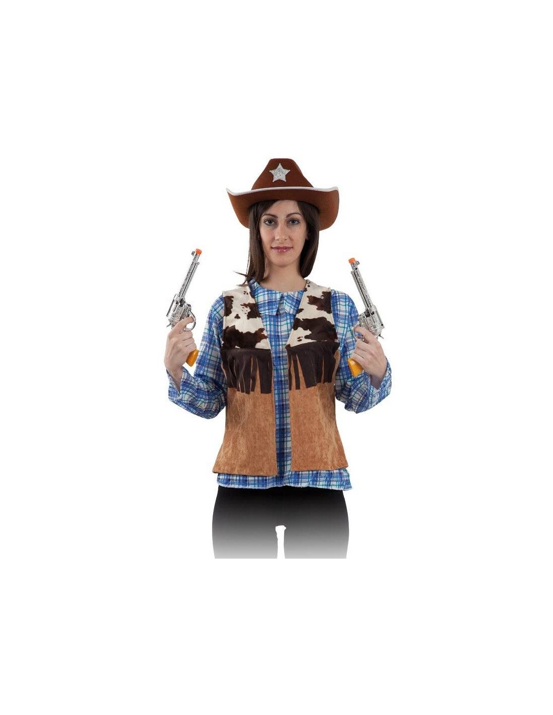 ¡La más rápida del Oeste! Complementa tu disfraz de vaquera con este chaleco, un buen sombrero y unas pistolas para que todos te respeten en el viejo Oeste. Perfecto para disfrazarte de forma cómoda y económica en Carnaval y en fiestas de indios y vaqueros.