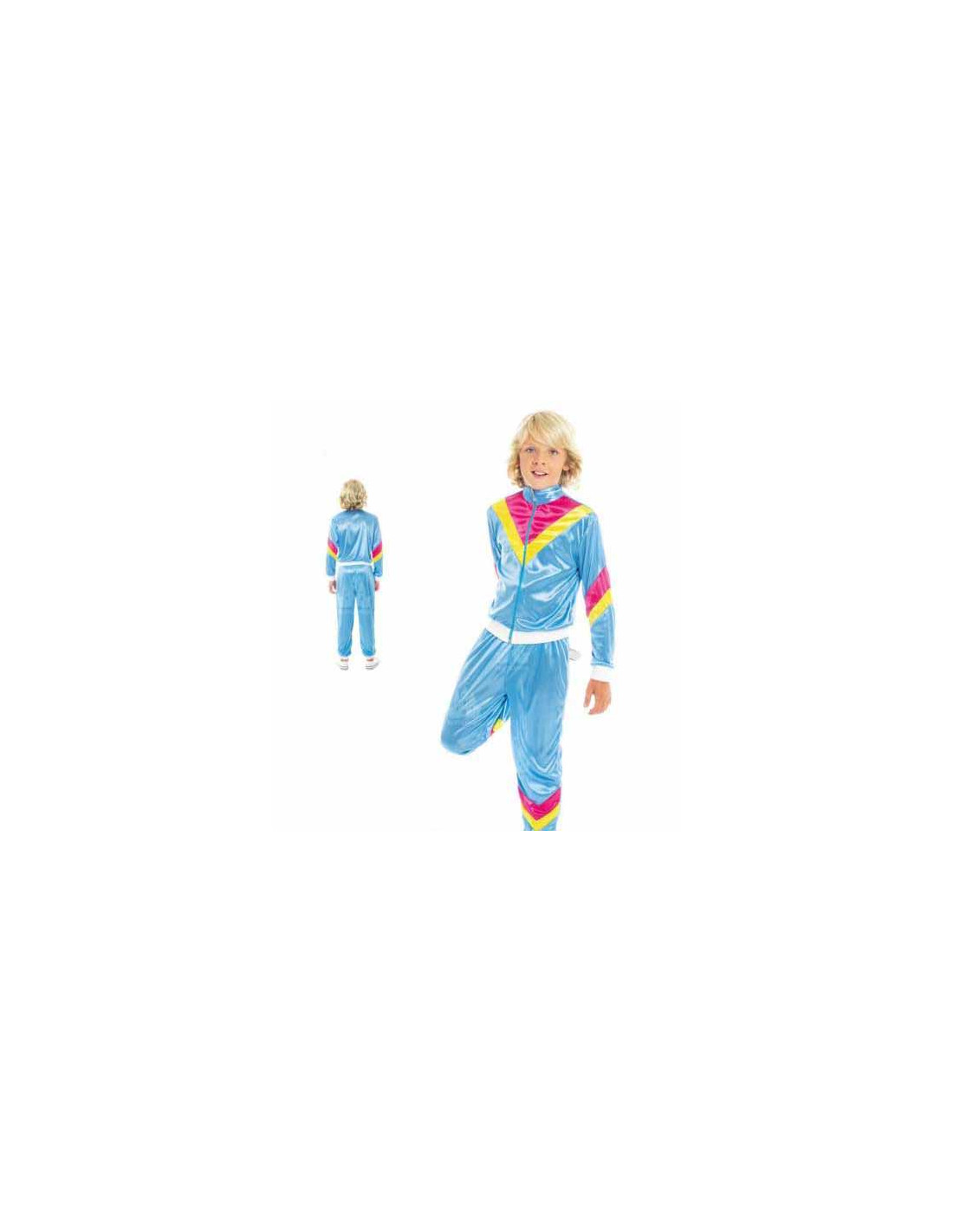 Con este disfraz viajarán a los 80 gracias a este chándal retro de color azul y detalles amarillos y rosas. Toda la familia podéis viajar al pasado y convertiros en una auténtica familia ochentera.