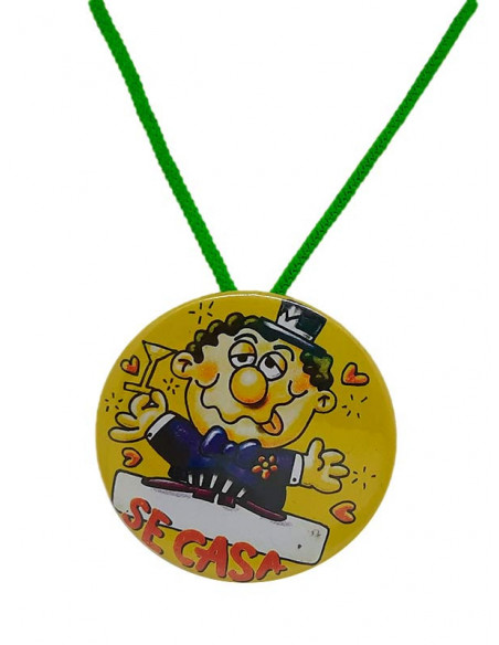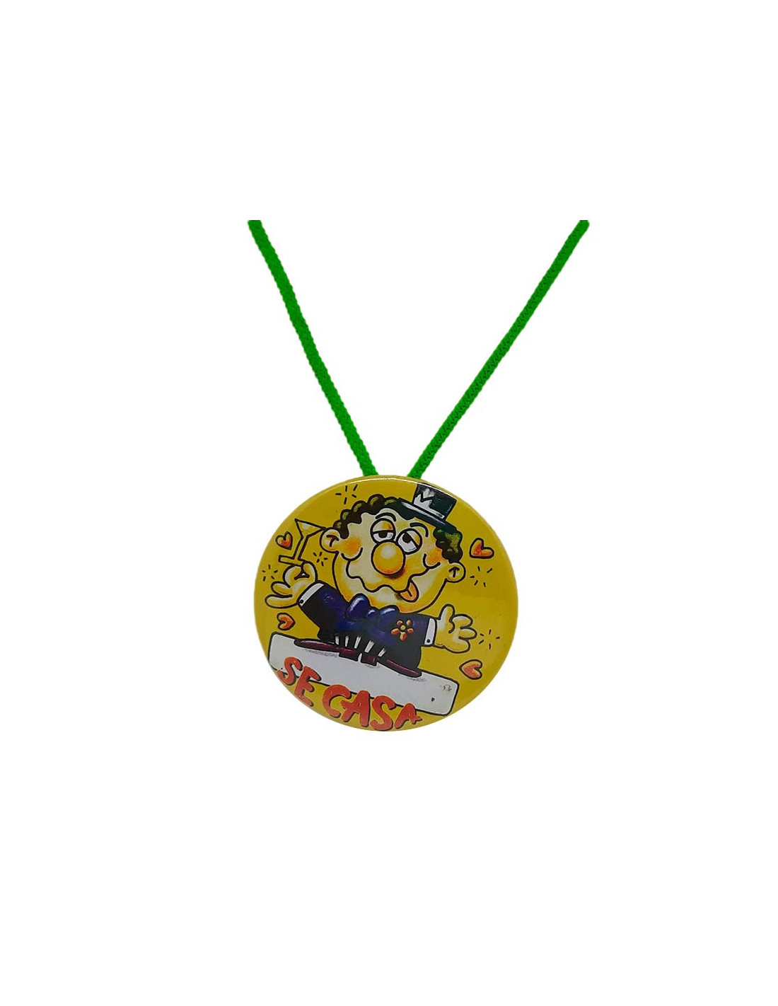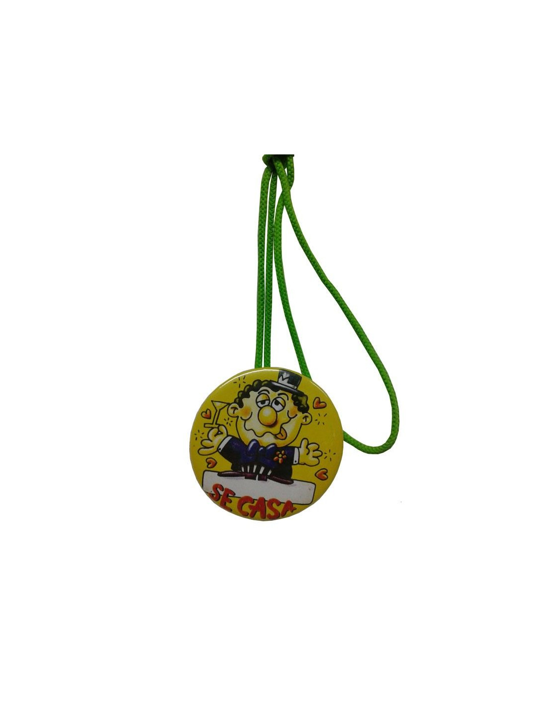 Chapa colgante para el novio despedidas que incluye una chapa de 5,5cm de diámetro, con cordon para colgar.