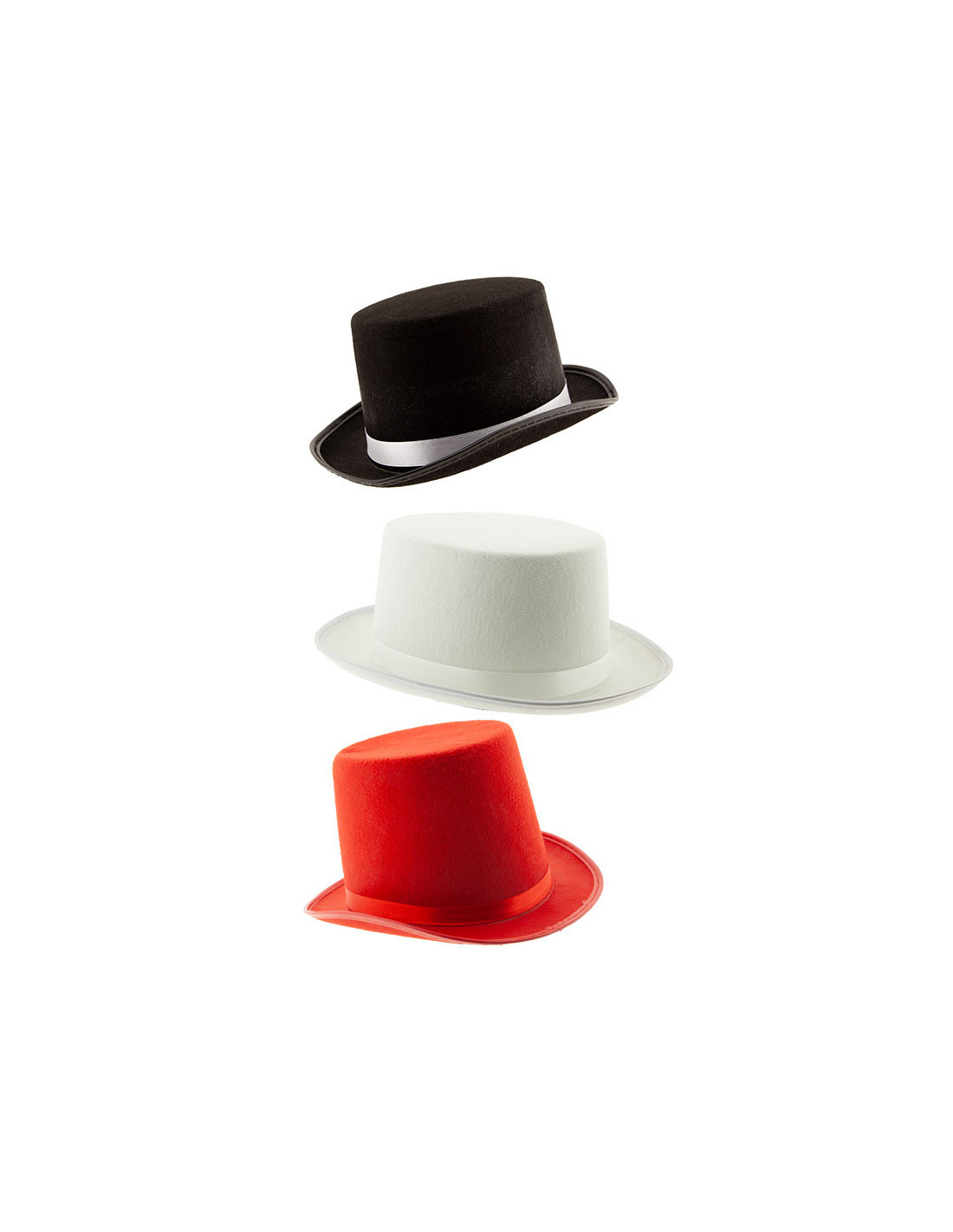 Chistera de fieltro con una altura de 12cm de alto el color blanco y negro. El color rojo mide 15,5cm de alto.