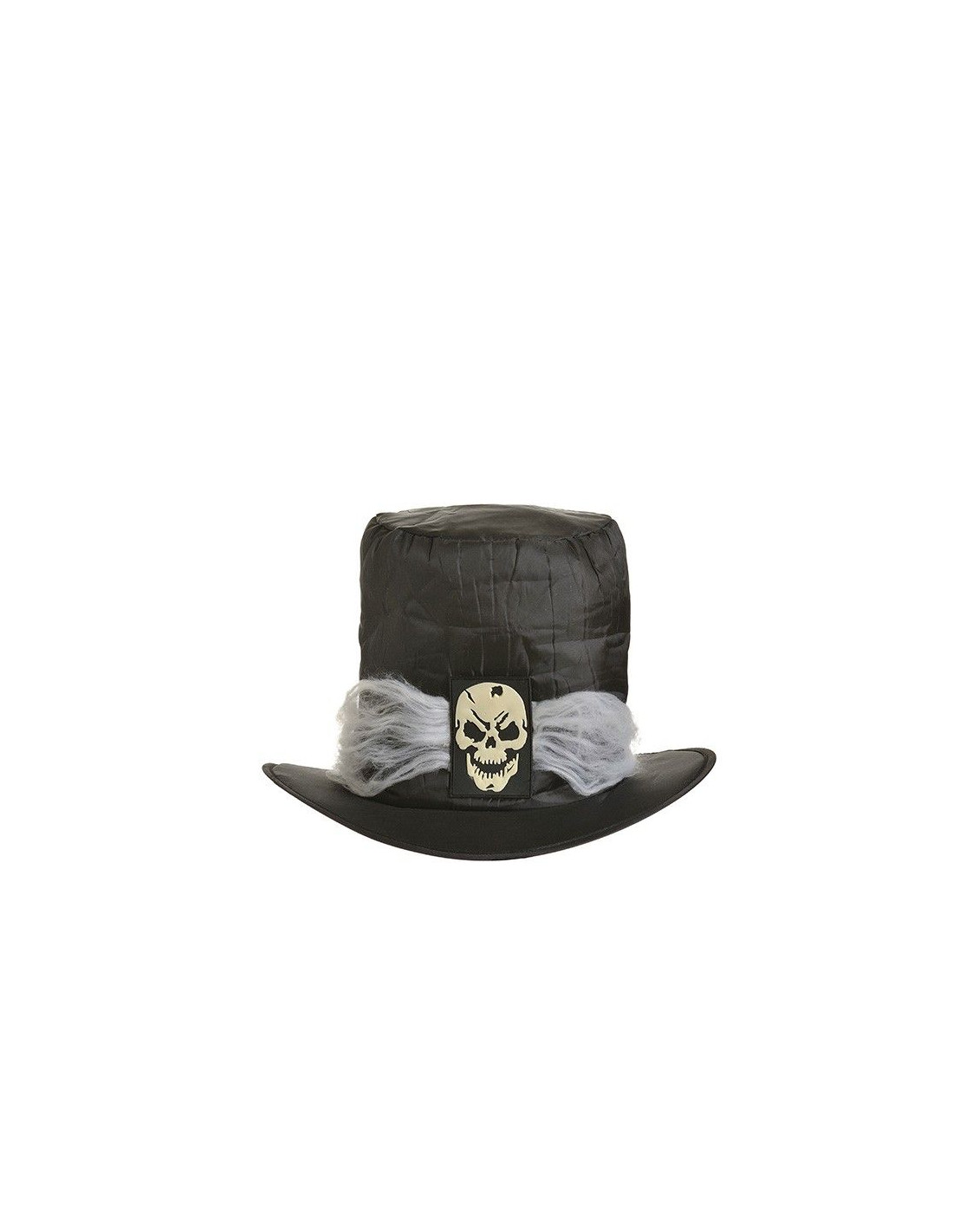 Incluye una chistera de Halloween fabricada en tejido y adornada con una calavera en la parte frontal.