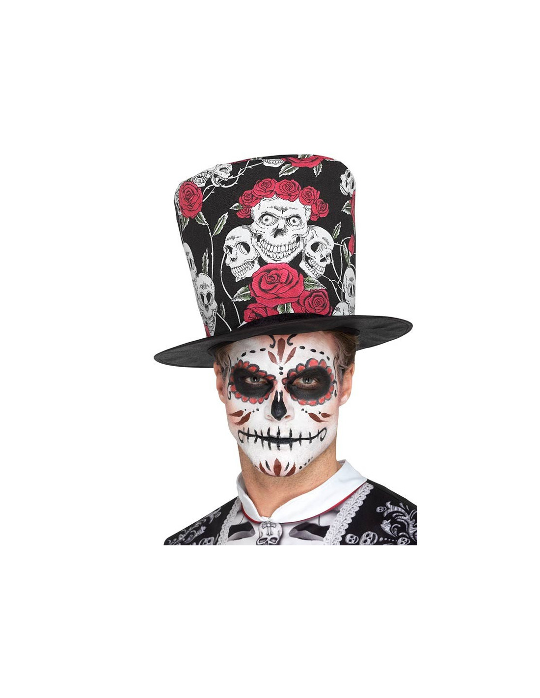 Completa tu disfraz de esqueleto mexicano y serás el muerto más elegante la noche de Halloween con esta chistera del día de los muertos.