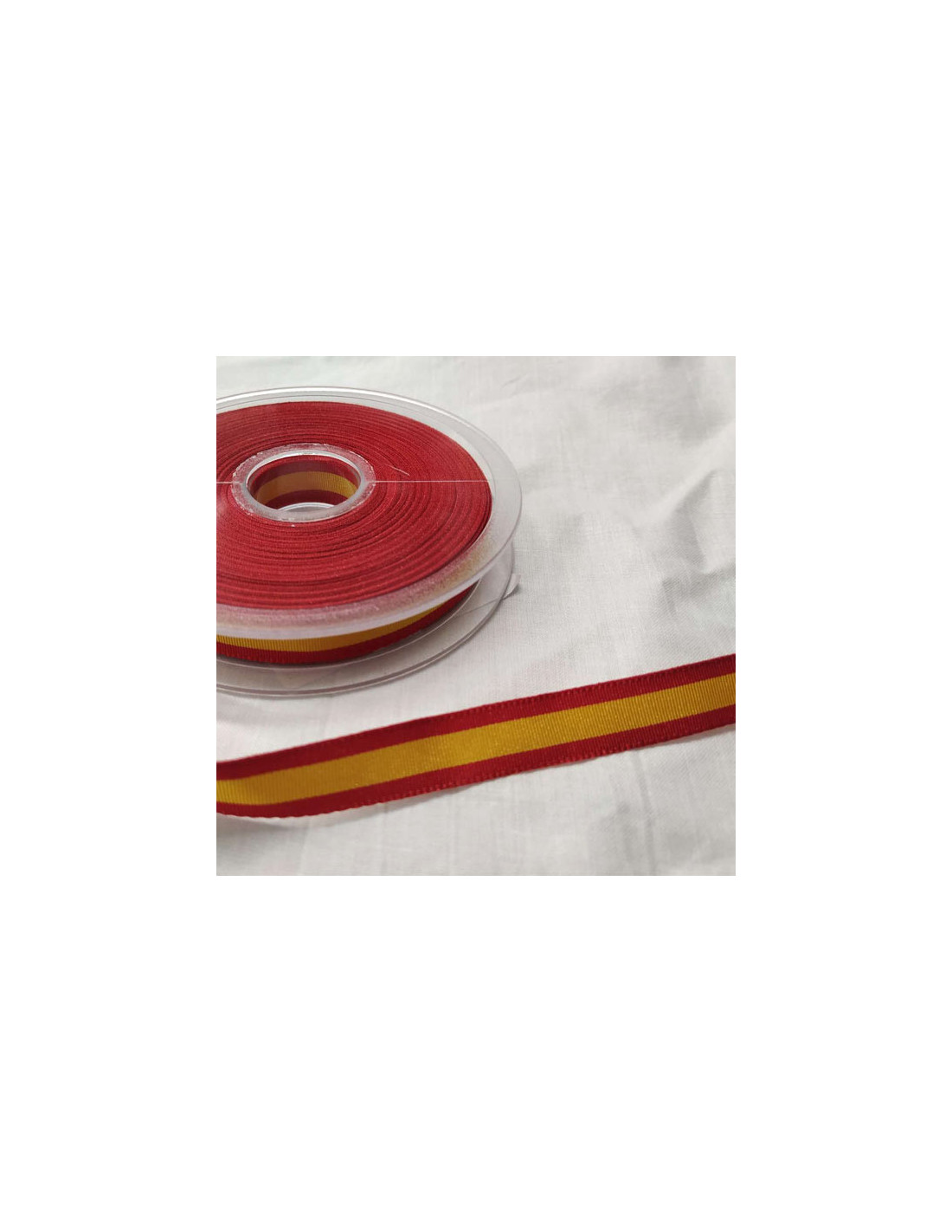 Cinta bandera España 12mm con una composición 100% poliéster.