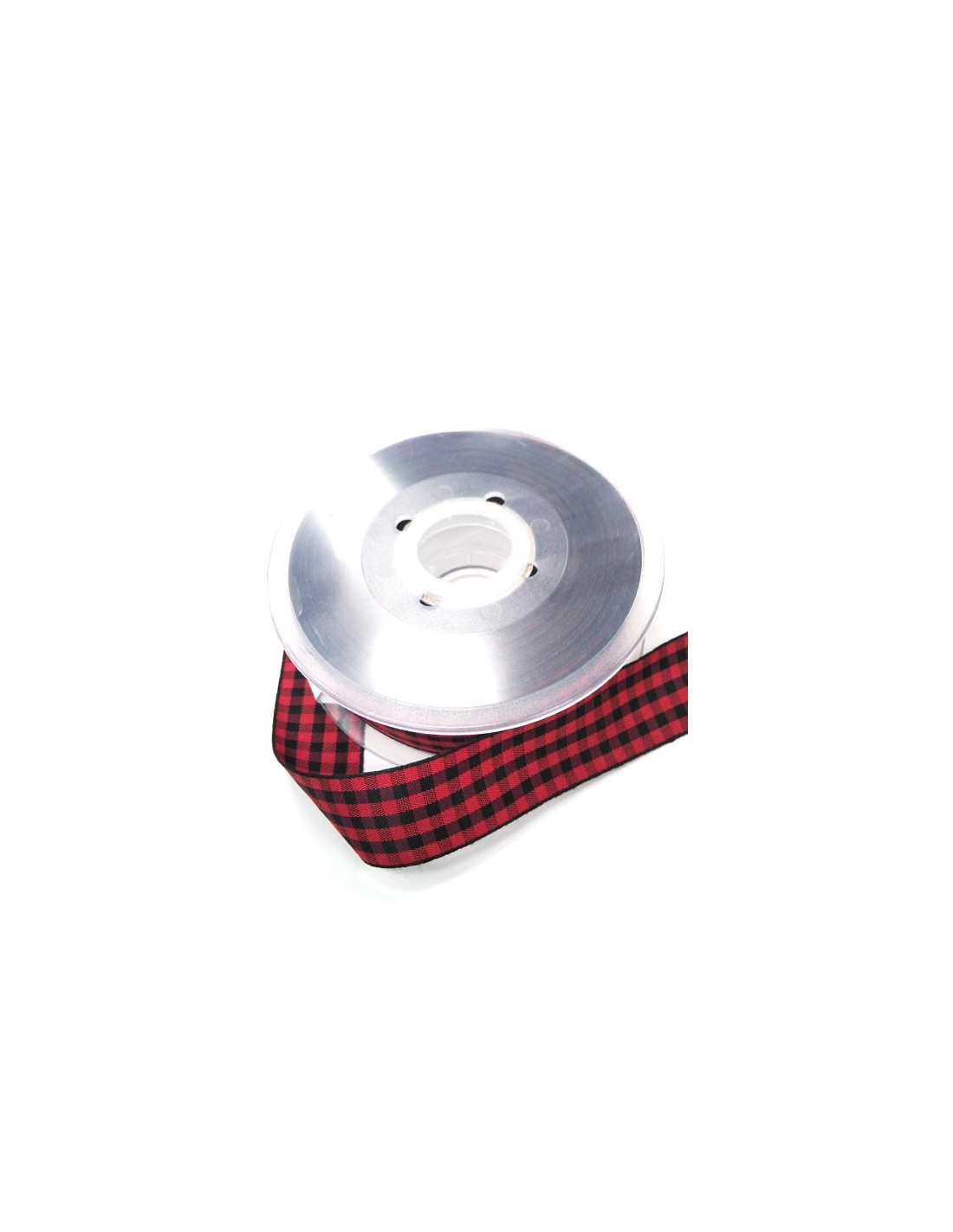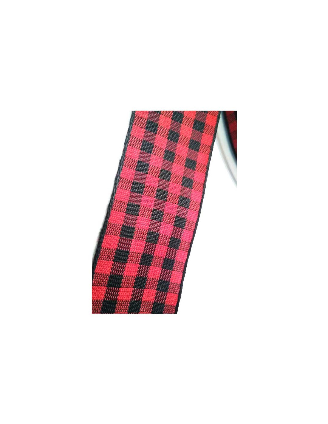 Cinta cachirulo de rayón de cuadro rojo y negro, de 25mm de anchura. Se vende por metros. Cada unidad equivale a un metro.