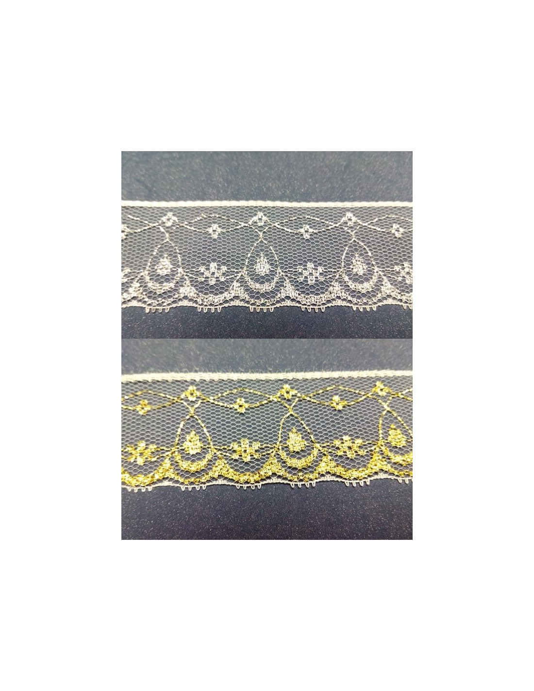 Cinta de 30mm de anchura decorado con arcos brillantes. Se vende por metros. Unidad mínima de compra 1m.