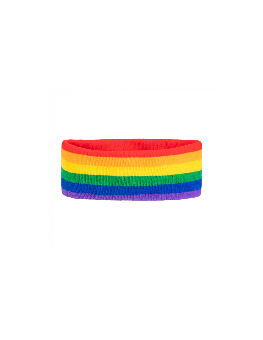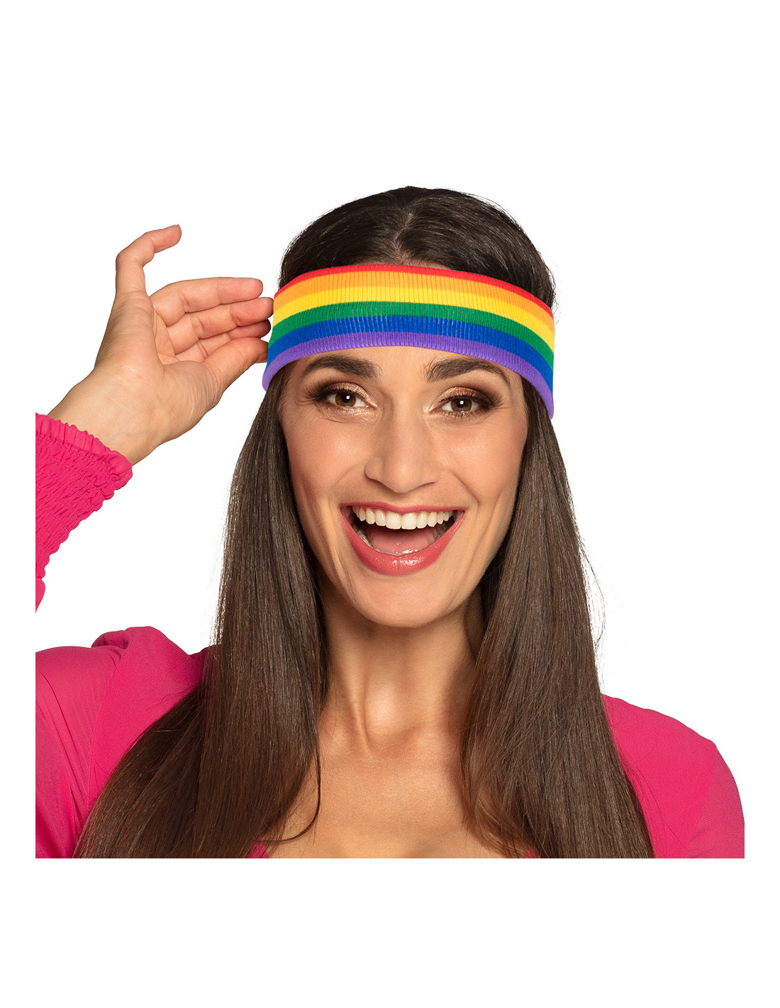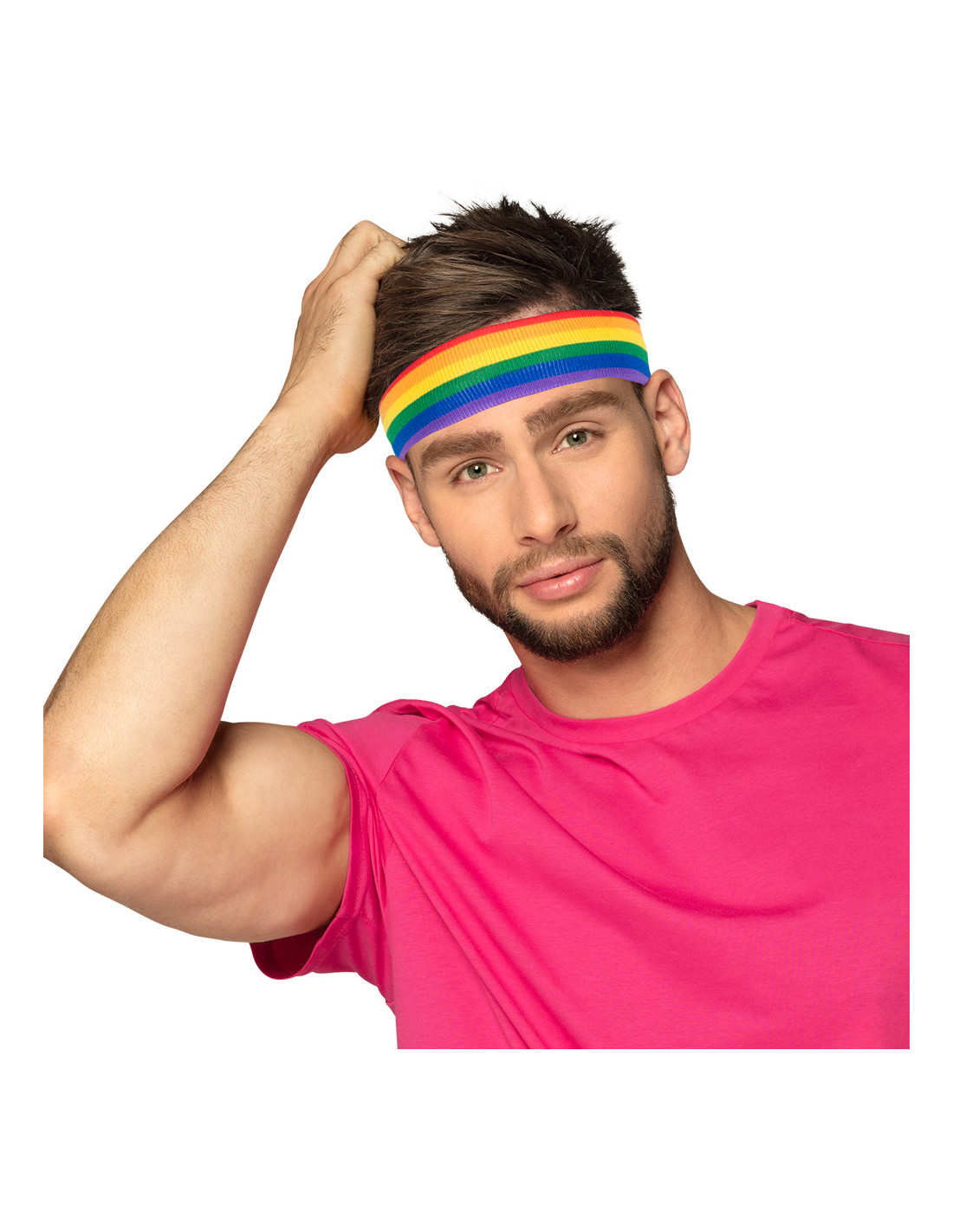 Colorida cinta deportiva arcoíris para colocar en la cabeza en fiestas temáticas o celebraciones del día del orgullo.