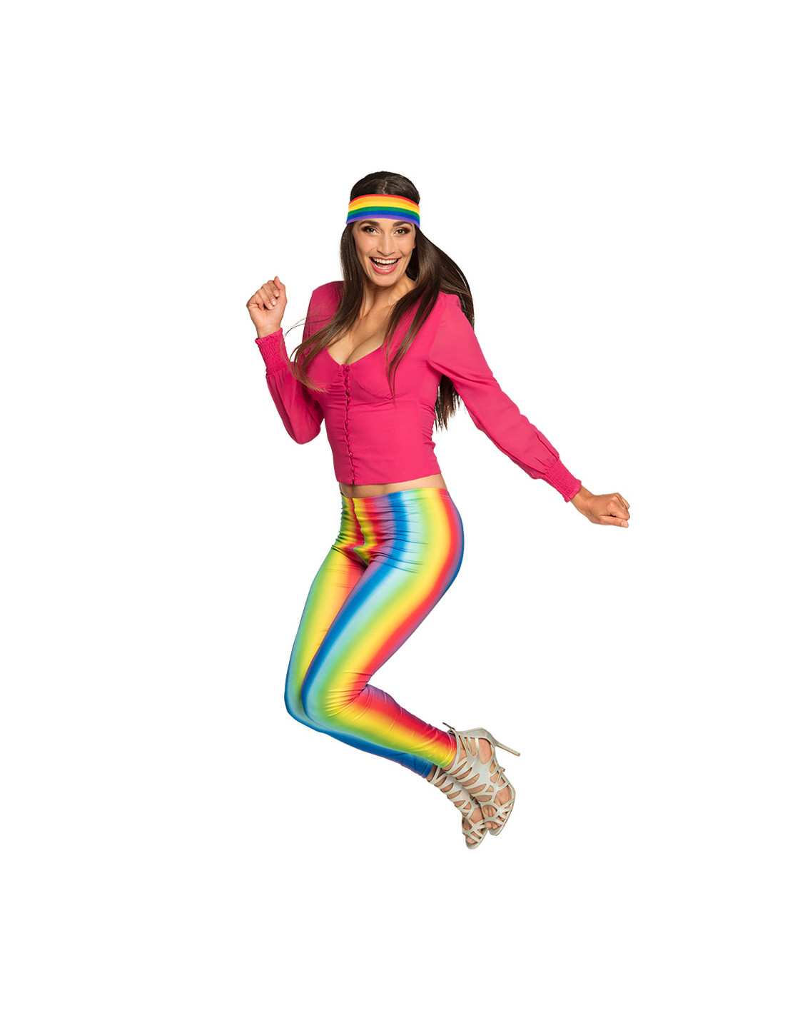Cinta deportiva arcoíris que incluye una cinta elástica multicolor para la cabeza.