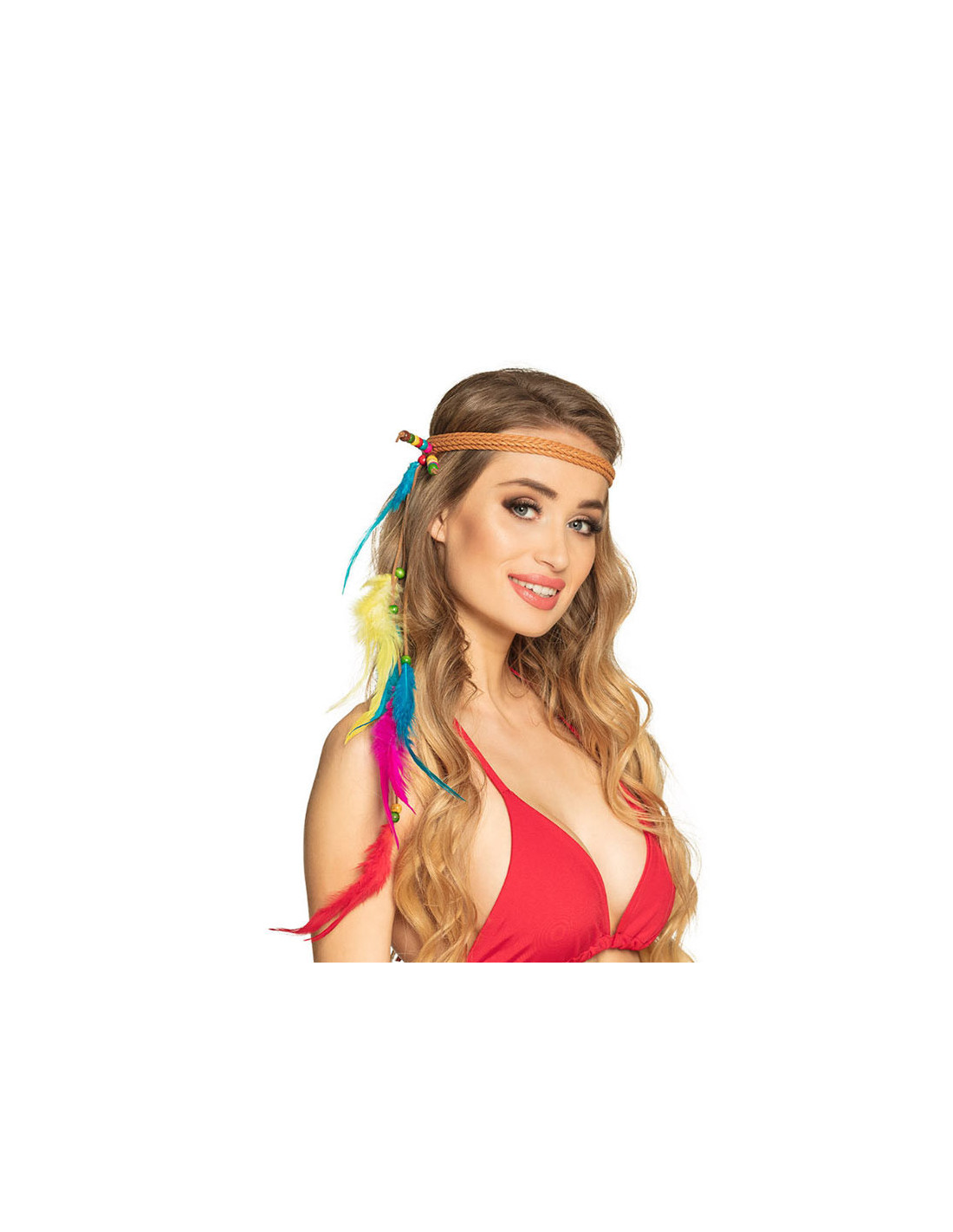 Dale un toque de color a tu disfraz con esta cinta hippie con plumas para Carnaval o Fiestas Temáticas. Esta bonita cinta para colocar en la cabeza es ideal para tu disfraz hippie.