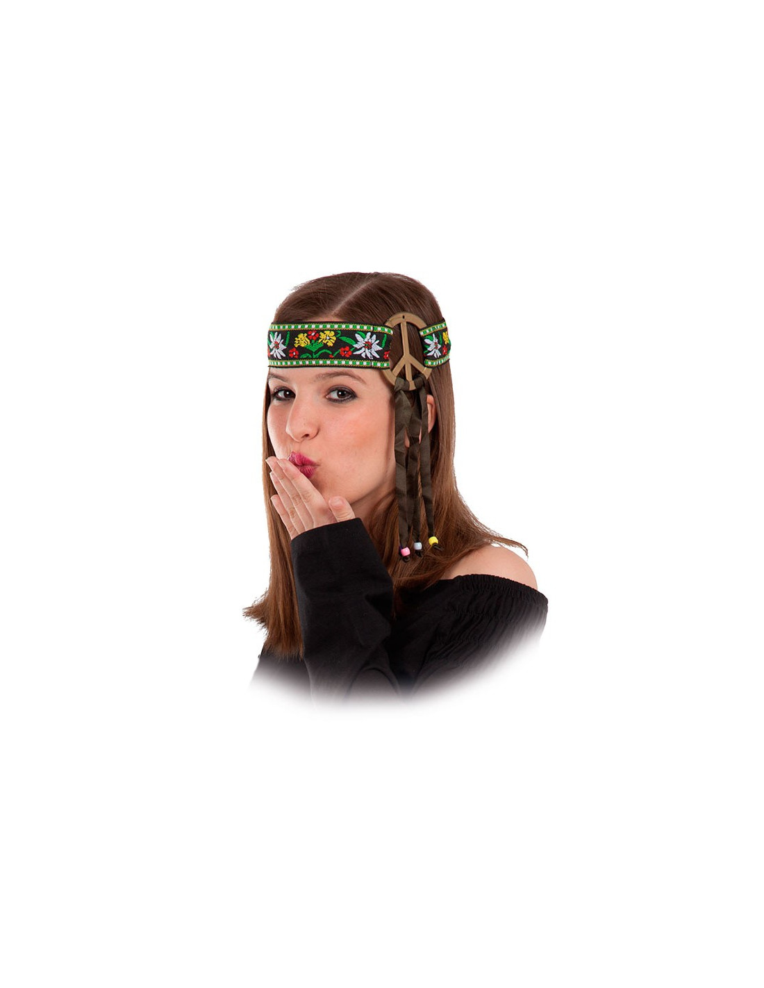 reparte paz y amor con tu cinta hippie de la paz. Completa tu disfraz de Carnaval con esta cinta hippie estampada y un símbolo de la paz de plástico.