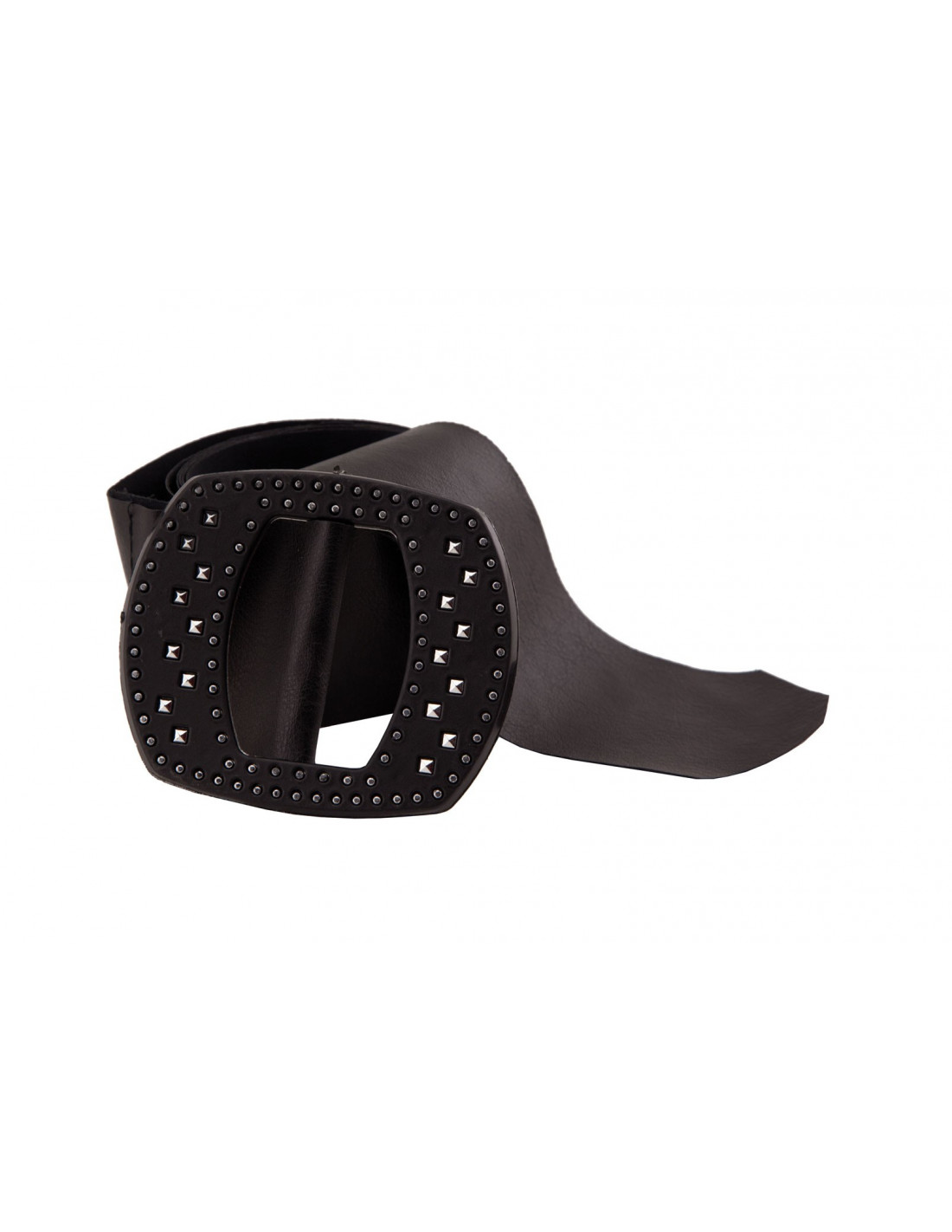 Cinturón hebilla grande que incluye un cinturón de polipiel de 150cm de largo y una hebilla metálica de 8,5x9,5cm.