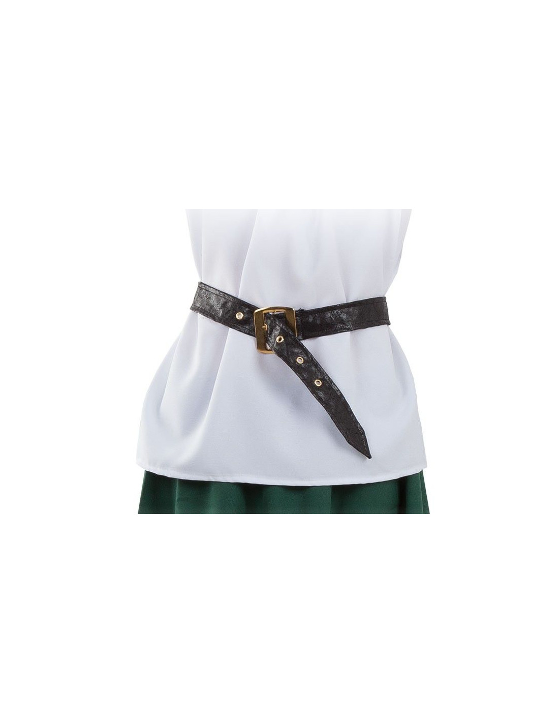 Cinturón medieval para tus representaciones de la Edad Media. Fabricado en polipiel negra, los agujeros para atarlo son remaches metálicos que le dan una impronta mucho más antigua. Es ideal para representaciones medievales. Mide 122cm de largo y 4cm de ancho.