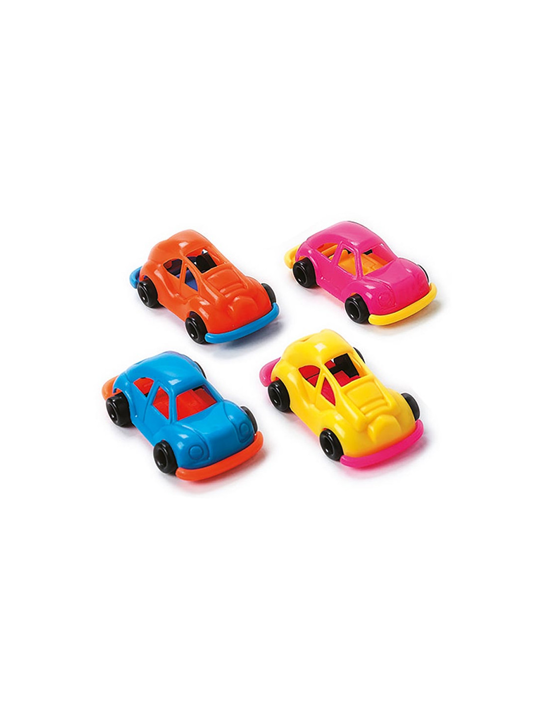 Coloridos coche de plástico para rellenar piñatas en fiestas y eventos. Los peques tirarán de las tiras de la piñata y entre las muchas sorpresas aparecerán estos divertidos coches.