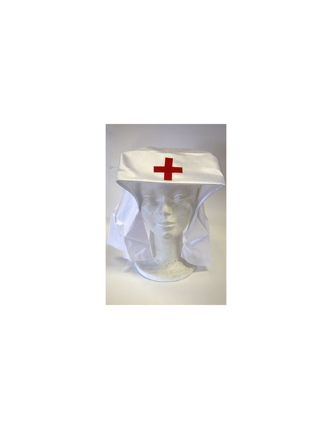 Complementa tu disfraz de enfermera tradicional con esta cofia de enfermera antigua con velo. Disponible en color blanco. Incluye cofia con velo con cruz en rojo a nivel decorativo.