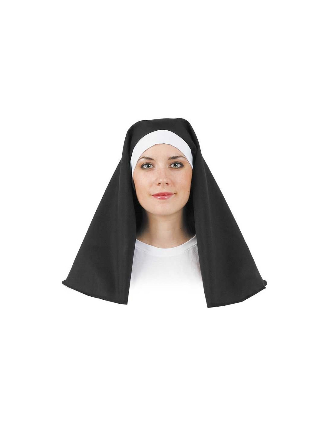 Complementa tu disfraz de monja con esta cofia de monja. En color blanco y negro.