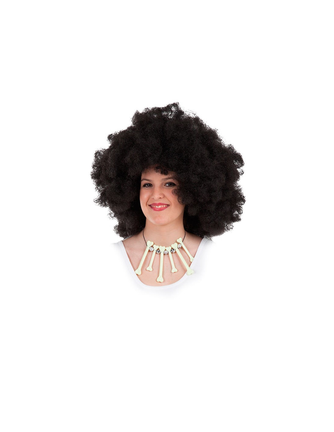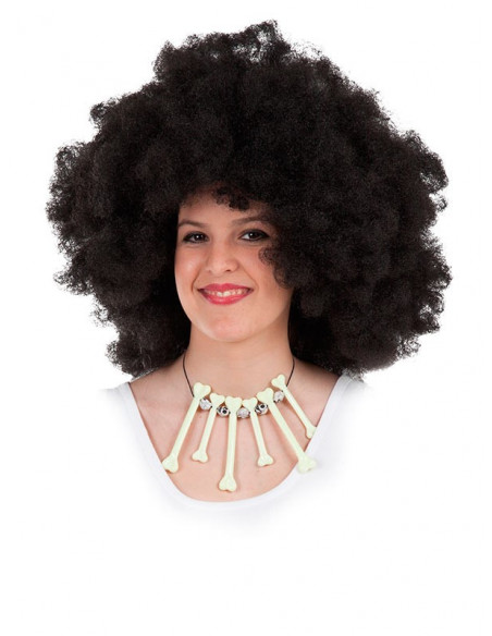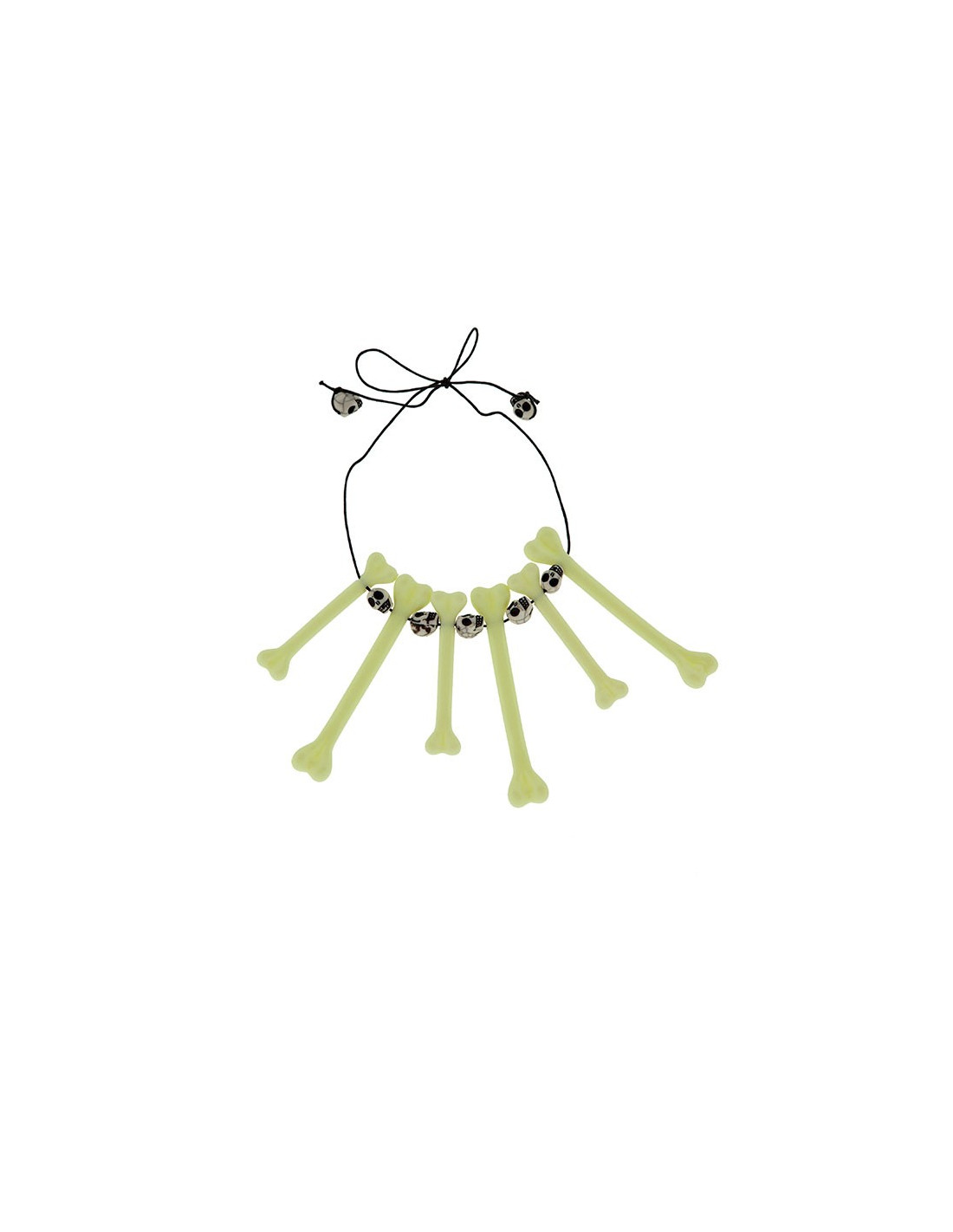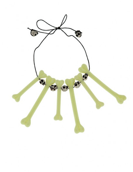El collar consta de hueso de distintos tamaños y pequeñas calaveras.