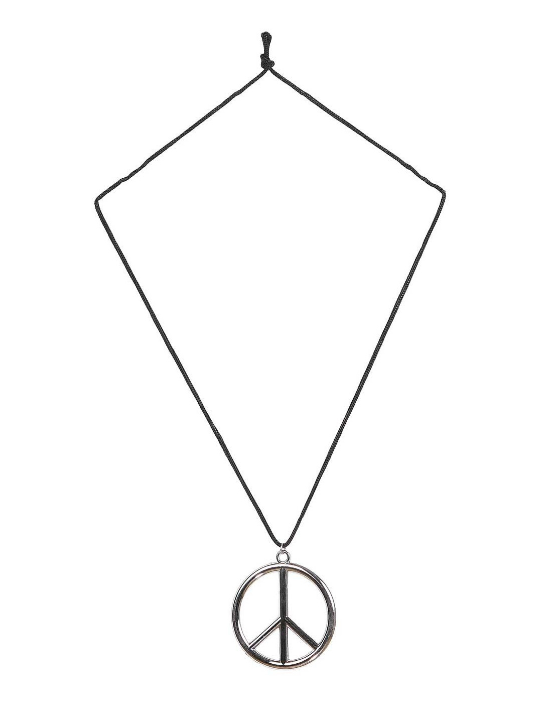 Collar símbolo de la paz para tu disfraz hippie o tu disfraz de los años 60. Incluye un original collar símbolo de la paz, con un cordón e algodón y el colgante con el símbolo hippie fabricado en metal.